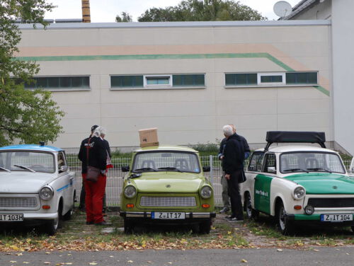 60 Jahre Trabant P 601 Universal – zu diesem Jubiläum, organisiert vom Verein Inter Trab e.V. (Internationales Trabant-Register) trafen sich Trabi-Fans aus ganz Deutschland am 4. Oktober 2025 in Meerane und Zwickau. Für die Gäste war an beiden Standorten – am EKM in Meerane und im August-Horch-Museum in Zwickau – ein abwechslungsreiches Programm, unter anderem mit Vorträgen und Filmvorführungen, vorbereitet.