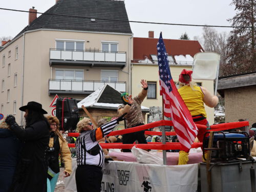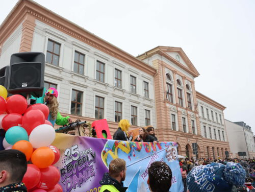 Doch nach dem letzten Wagen war noch lange nicht Schluss: Bis in die Abendstunden feierten die Jecken bei der Aftershow-Party auf dem Parkplatz vor der Karl-Heinz-Freiberger-Sporthalle weiter und ließen den närrischen Tag ausgelassen ausklingen.