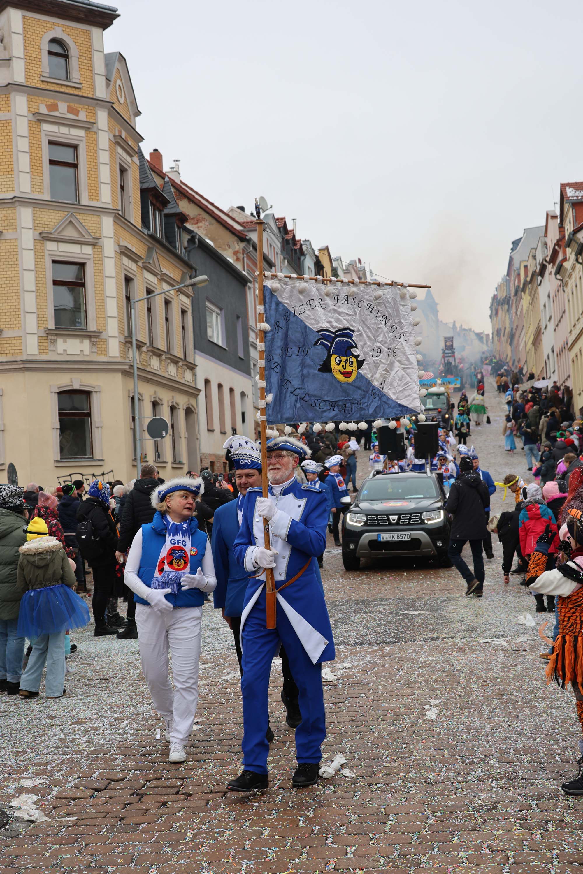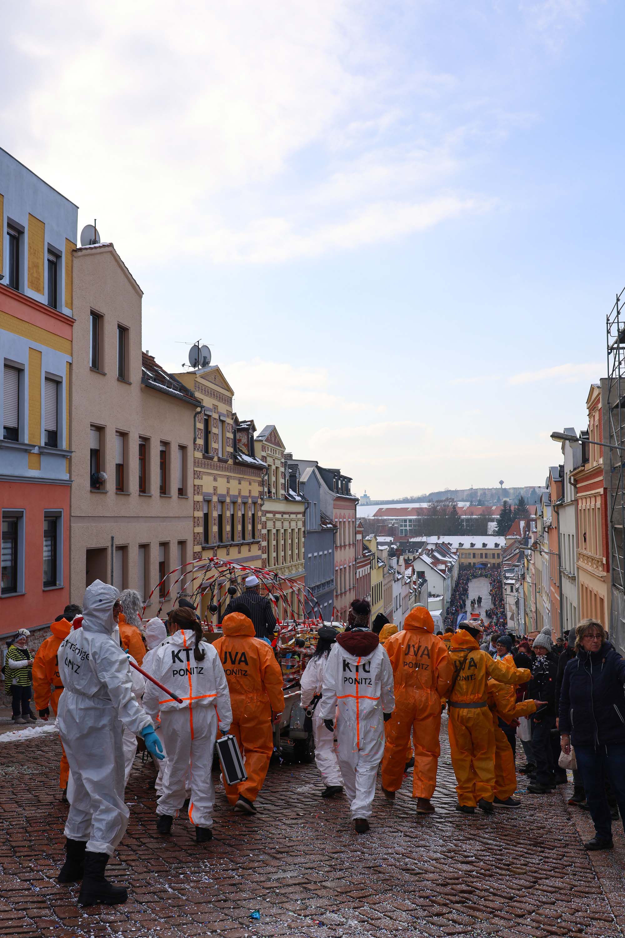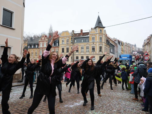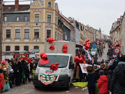 Großer Dank gilt allen aktiven Teilnehmerinnen und Teilnehmern des Umzugs, den zahlreichen Vereinen, Unternehmen und Gruppen, den vielen Besucherinnen und Besuchern sowie den Mitarbeiterinnen und Mitarbeitern der Stadtverwaltung. Für die Sicherheit der Umzugsteilnehmer und Gäste sorgten die Kameradinnen und Kameraden der Feuerwehren sowie die Einsatzkräfte von Polizei und Rettungsdienst. Ein besonderes Dankeschön geht außerdem an alle Helferinnen und Helfer, die beim anschließenden Aufräumen im Einsatz waren, dazu gehören die Mitarbeiterinnen und Mitarbeiter der Meeraner Stadttechnik und der Stadt Glauchau.