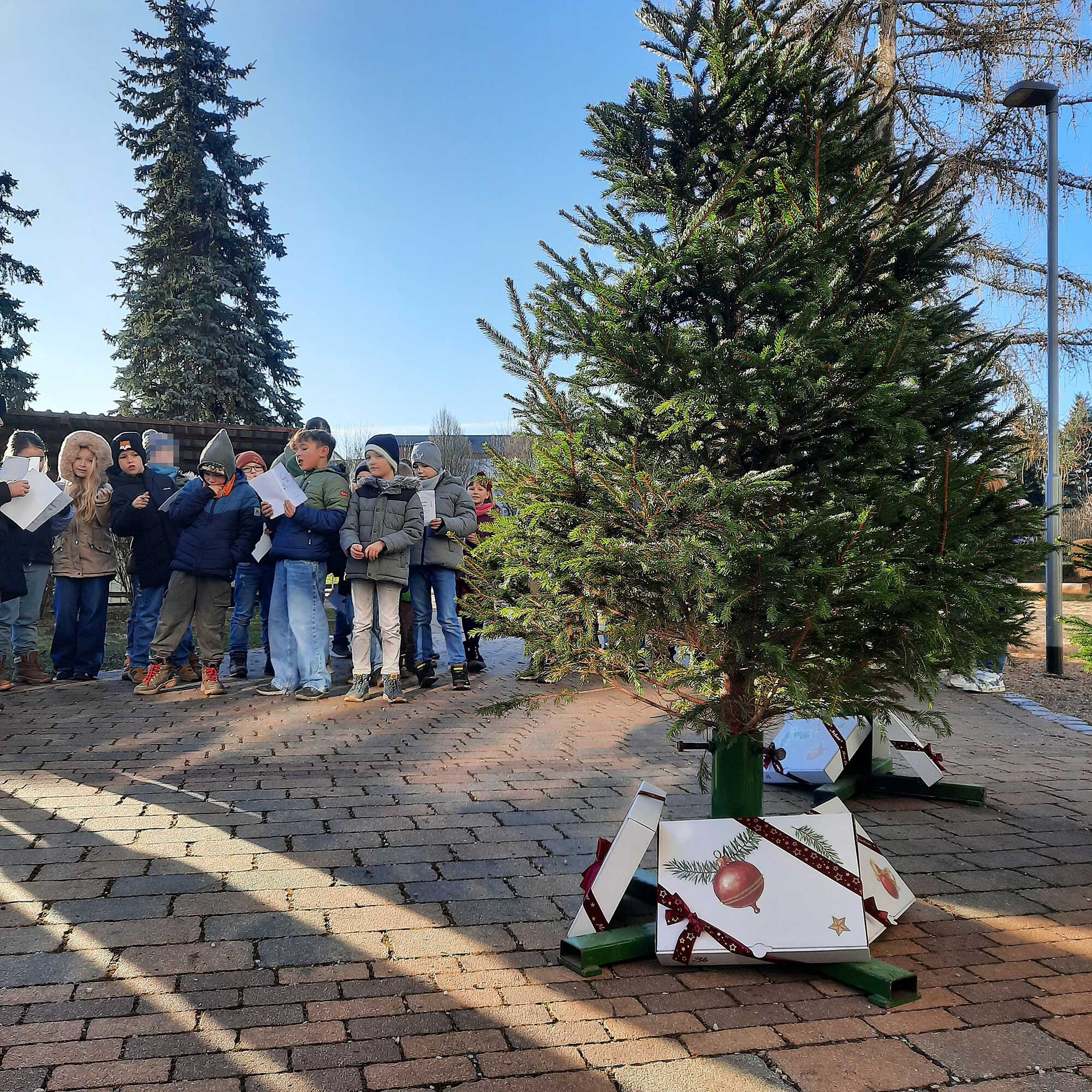 Am 18. Dezember fand auf dem Schulhof das Weihnachtssingen aller Klassen statt. In festlicher Atmosphäre sangen die Kinder gemeinsam altbekannte Weihnachtslieder wie „O Tannenbaum“ und „Fröhliche Weihnacht“. „Auf diesen besonderen Moment hatten sich die Klassen bereits während der gesamten Vorweihnachtszeit vorbereitet. Jeden Morgen wurden die Weihnachtslieder geübt und die Kinder stimmten fröhlich mit ein“, berichtet die Schule. Zum Abschluss des gelungenen Weihnachtssingens erwartete die Klassen ein Geschenk unterm Weihnachtsbaum. So klang die vorweihnachtliche Feier für alle mit viel Freude aus.