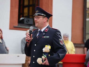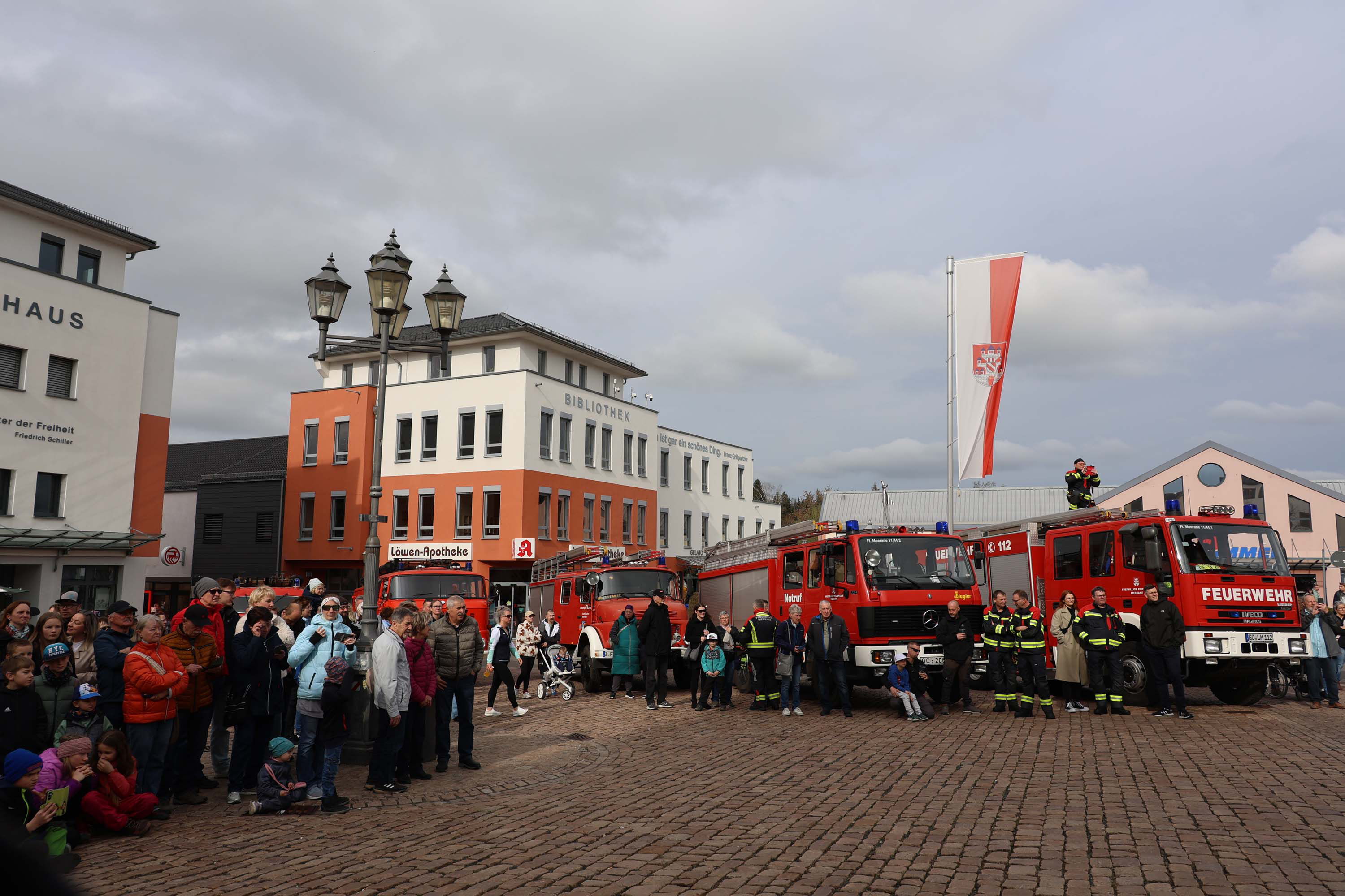 Das neue Einsatzfahrzeug sei ein hochkomplexes Arbeitsgerät, das helfe, schneller und effizienter Hilfe zu leisten und Menschen in schwierigen Situationen besser zu schützen. „Doch so beeindruckend dieses Fahrzeug auch ist – das Wichtigste sind die Menschen, die in den Einsatz fahren. Ohne diese wäre es nur ein sehr teures rotes Auto. Erst durch euren Einsatz, liebe Kameradinnen und Kameraden, wird daraus ein Rettungsfahrzeug“, so der Bürgermeister. Die Investition sei deshalb auch Ausdruck der Wertschätzung gegenüber den Feuerwehrangehörigen. Die Stadt bemühe sich kontinuierlich, die Ausstattung der Wehr auf einem modernen Stand zu halten. Das neue Fahrzeug und die große Fahrzeugschau sind ein besonderes Erlebnis gewesen – nicht nur für die erwachsenen Gäste, sondern auch für die vielen Kinder, die mit großen Augen die Technik bestaunten. Vielleicht, so der Bürgermeister, wecke dieser Tag auch bei jungen Besucherinnen und Besuchern das Interesse an der Feuerwehr. „Diese Fahrzeuge sollen heute auch Werbung für unsere Feuerwehr machen. Denn nur wenn sich junge Frauen und Männer bereit erklären, Dienst für unsere Stadt zu leisten, bleibt die Feuerwehr auch in Zukunft einsatzfähig.“