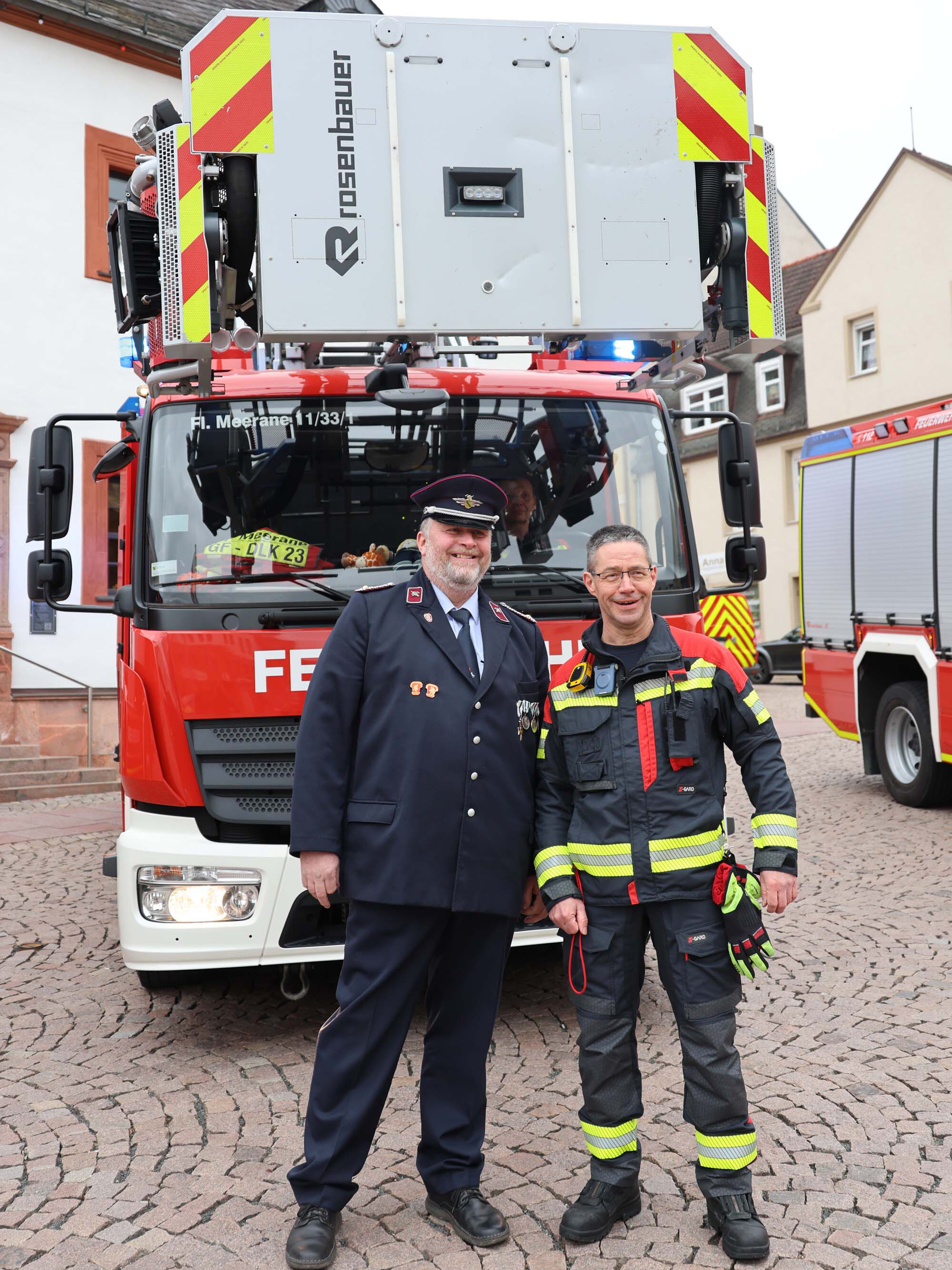 Im Rahmen der Veranstaltung wurden auch fünf Vorgängerfahrzeuge vorgestellt, die im Laufe der Jahre im Dienst der Meeraner Feuerwehr standen – teilweise sogar noch heute. Zu jedem Fahrzeug berichtete Kai Götze Wissenswertes und erzählte kleine Anekdoten aus ihrer Einsatzzeit. Eines dieser Fahrzeuge war das Löschfahrzeug, das an diesem Tag außer Dienst gestellt wurde und nun durch das neue HLF 20 ersetzt wird. Es kam im August 1994 zur Meeraner Feuerwehr und absolvierte am 14. März 2026 um 11.21 Uhr seinen letzten Einsatz, wie der Wehrleiter informierte.