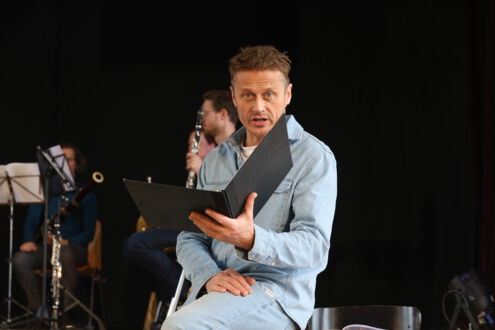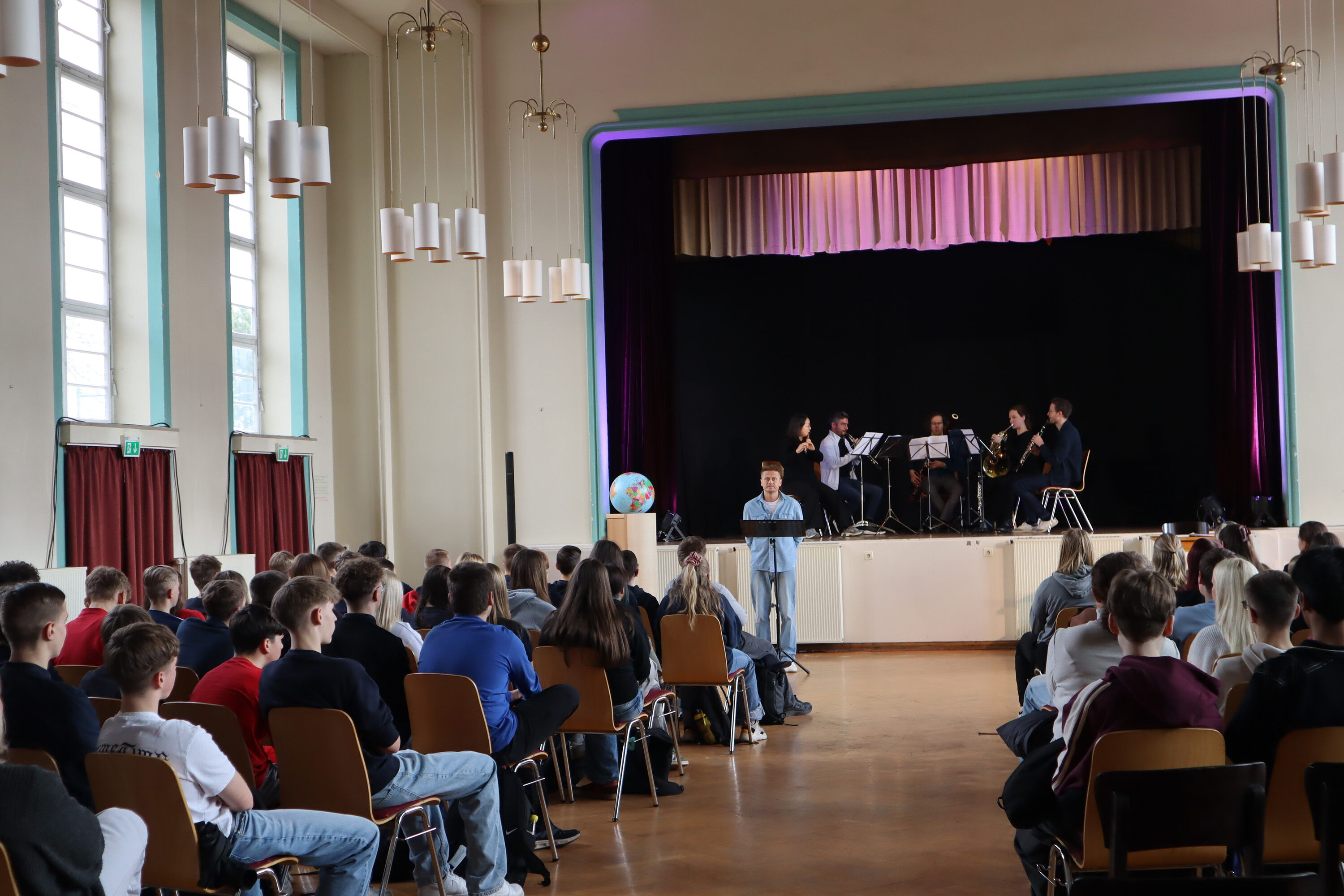 Das Ensemble „OPUS 45“ mit Schauspieler Roman Knižka war am 27. März 2026 wieder zu Gast in Meerane – diesmal für eine außergewöhnliche Sondervorstellung für Meeraner Schülerinnen und Schüler. Eingeladen zur musikalischen Lesung hatte erneut die Partnerschaft für Demokratie Meerane, deren Koordinatorin Juliane Richter die Schülerinnen und Schüler der 8. Klassen der Tännichtschule und der Internationalen Oberschule Meerane sowie der 9. Klasse der Goetheschule zur besonderen Geschichtsstunde im Kirchgemeindehaus begrüßte.