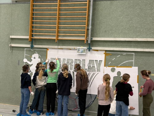 Hintergrund des Projekts waren Schmierereien, die bei einem Einbruch Ende des Jahres 2024 in der Halle hinterlassen wurden. Bei diesem Akt des Vandalismus wurden an den Filzwänden der Halle verfassungsfeindliche Symbole angebracht. Statt die Spuren lediglich zu beseitigen, sollte diesmal bewusst etwas Neues entstehen – sichtbar, positiv und eindeutig. Die Antwort der Mädchen zwischen 10 und 12 Jahren: „Fairplay“.