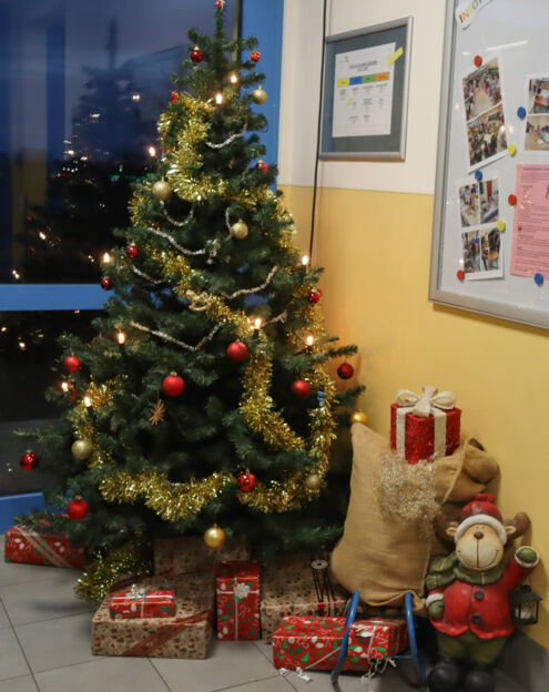Ein besonderes Highlight war der Besuch des Weihnachtsmanns, der mit seinem fröhlichen Lächeln durch das Schulhaus und über das weitläufige Gelände spazierte und dabei jedes Kind persönlich begrüßte. Zahlreiche Schülerinnen und Schüler machten ihm mit dem Vortrag von Gedichten schon vor dem ersten Advent eine große Freude.