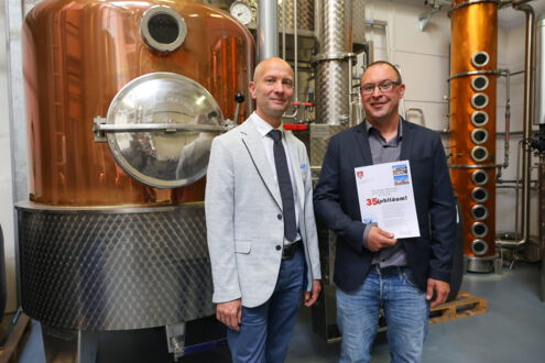 Darüber hinaus werden bei Friedrich Specht Söhne GmbH Meerane noch viele weitere feine Spirituosen – darunter Weinbrände, Klare, Liköre und Kräuterliköre – hergestellt, abgefüllt und vertrieben. Davon machte sich Bürgermeister Jörg Schmeißer ein Bild, als er am 2. September 2025 anlässlich des 35-jährigen Jubiläums das Unternehmen besuchte und die herzlichsten Glückwünsche überbrachte. Mit Betriebsleiter Johannes Bauch tauschte er sich über aktuelle Trends, verschiedene Herstellungsprozesse und das Unternehmen selbst aus.
