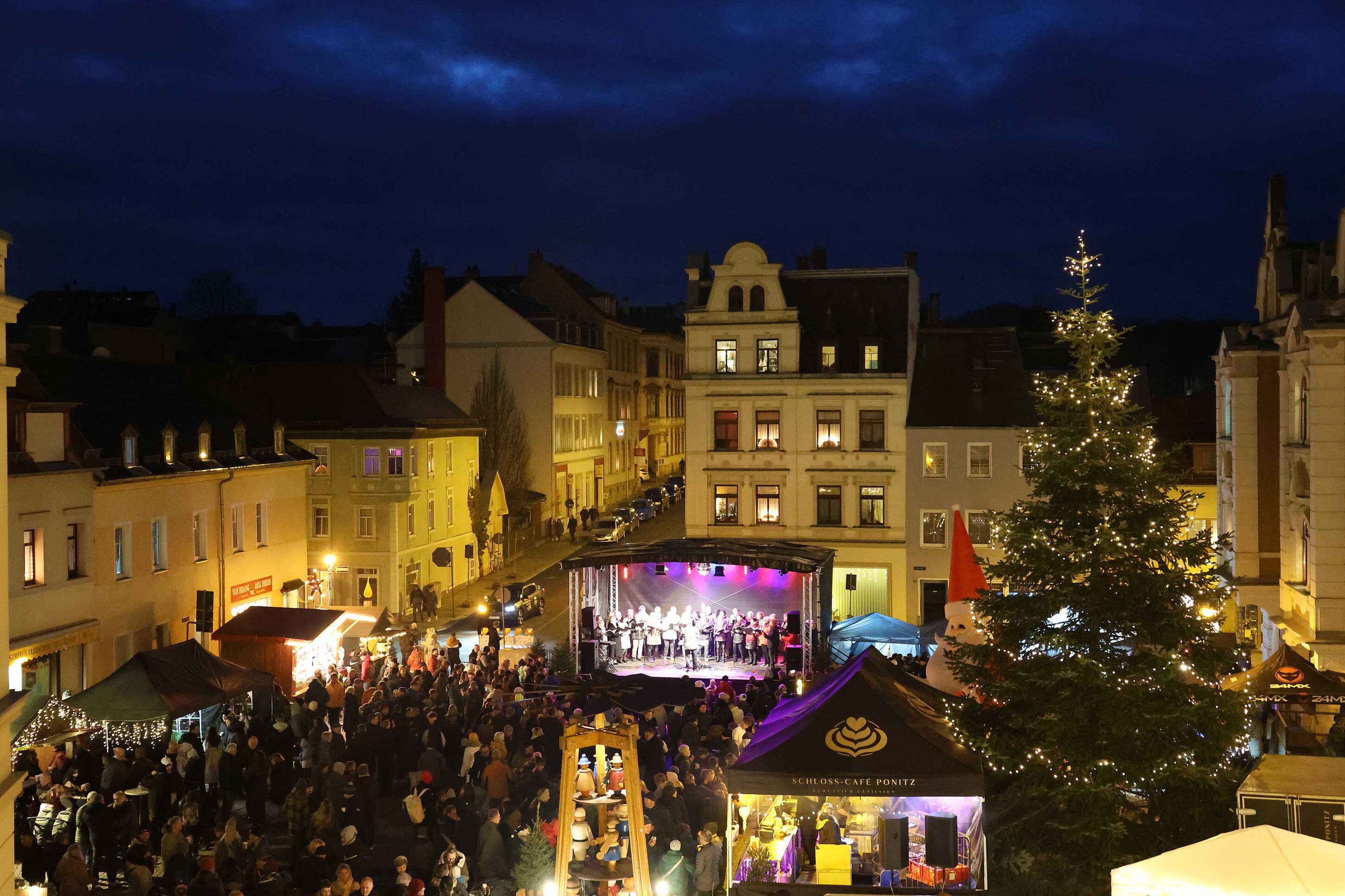 Mit einem großartigen Meeraner Weihnachtsmarkt am vergangenen 1. Adventswochenende ist unsere Stadt stimmungsvoll in die Weihnachtszeit gestartet. An allen drei Tagen war die Meeraner Innenstadt vom Teichplatz über Neumarkt, Marienstraße und Markt Anziehungspunkt für viele Besucherinnen und Besucher, auf die ein abwechslungsreiches Bühnenprogramm mit Musik, Tanz und Magie, weihnachtlich geschmückte Markthütten mit Deko- und Geschenkideen zur Weihnachtszeit, Angebote zum Mitmachen für Groß und Klein und natürlich jede Menge kulinarische Leckereien warteten.
