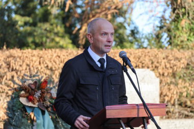Aus der Erinnerung Hoffnung zu schöpfen und mit ihr über die Gräber hinaus Brücken zu bauen zwischen Generationen, zwischen Völkern und zwischen Menschen, wünschte Jörg Schmeißer den Anwesenden. Er rief auf, nicht nur zu trauern, sondern auch mutig zu sein für Demokratie, für Menschlichkeit und für Frieden. „Denn der Frieden beginnt nicht irgendwo da draußen. Er beginnt hier bei uns“, so der Bürgermeister. Jörg Schmeißer endete seine Ansprache mit den Worten: „Möge dieser Tag uns mahnen, aber auch stärken: für eine Zukunft, in der Hass keine Macht hat und in der wir die Würde jedes Menschen achten. Nie wieder Krieg. Nie wieder Gewalt. Nie wieder Hass.“