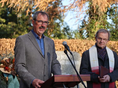 In seiner Ansprache ging Ragnar Quaas auch auf die Frage danach ein, was jeder Einzelne für den Frieden tun kann und benannte Alltagsbeispiele: die Teilnahme an Veranstaltungen wie dem Volkstrauertag, das Setzen von Zeichen für den Frieden und das Erinnern an die Grausamkeit des Krieges mit Dokumentationen, der Pflege von Gedenkstätten – all dies sind Mahnungen für den Frieden. Und überall, wo sich Menschen die Hand reichen, wird etwas für den Frieden getan, so Pfarrer Quaas.
