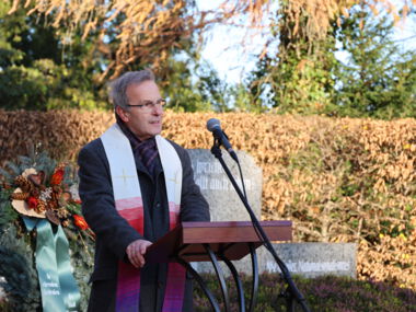 Von der Evangelischen Kirche sprach Pfarrer Ragnar Quaas zu den Gästen und hob seine Freude darüber hervor, dass die Gedenkfeier zum Volkstrauertag und die Pflege der Gedenkstätten in Meerane eine gute Tradition ist. Auch aus seiner Familiengeschichte berichtete Pfarrer Quaas und machte damit eindrücklich deutlich, wie wichtig die Erinnerung ist, um sich die Schrecken von Krieg und Gewaltherrschaft und das Leid ihrer Opfer bewusst zu machen und damit aus der Vergangenheit zu lernen.
