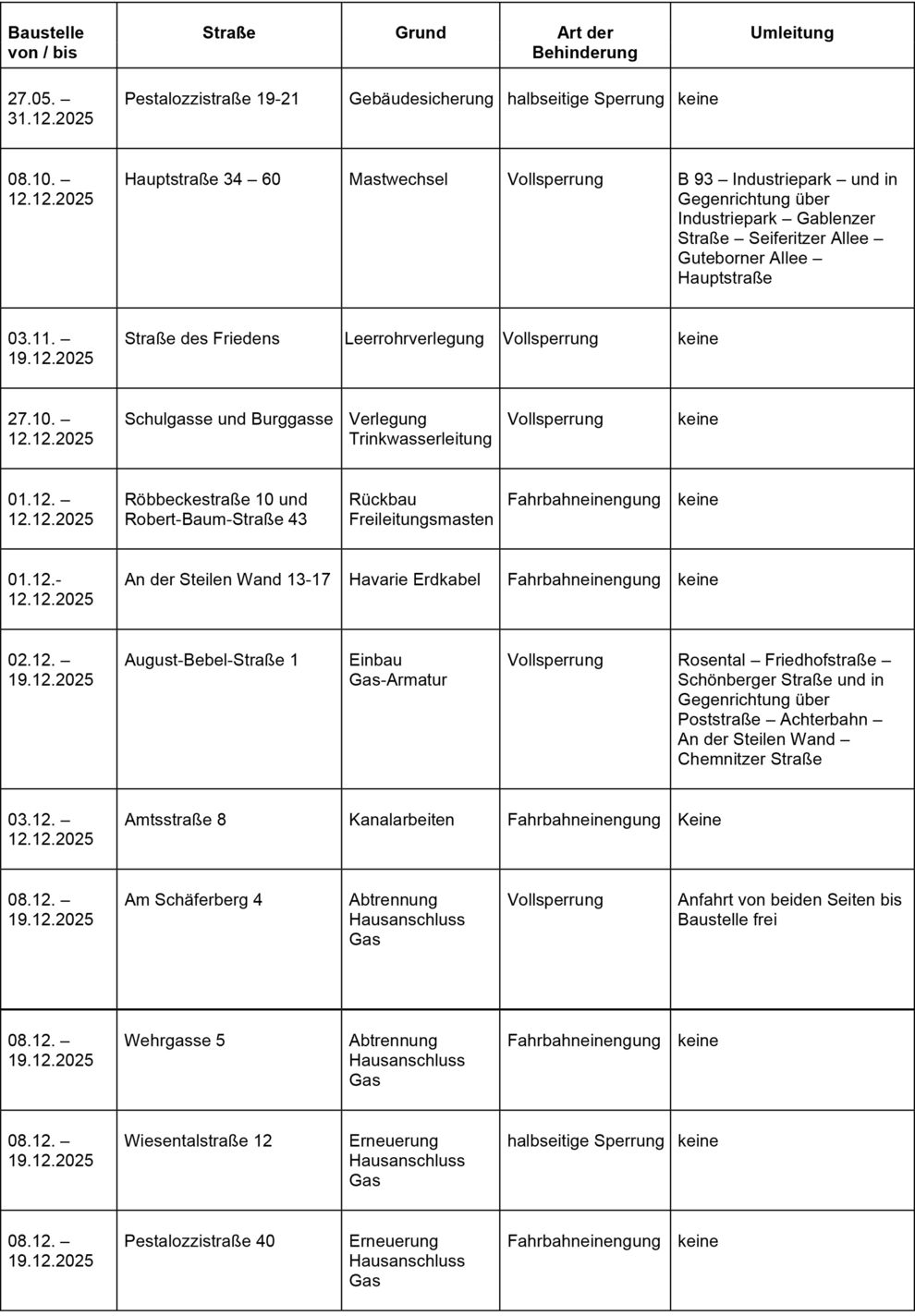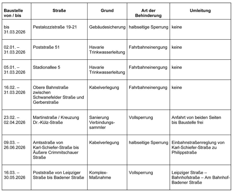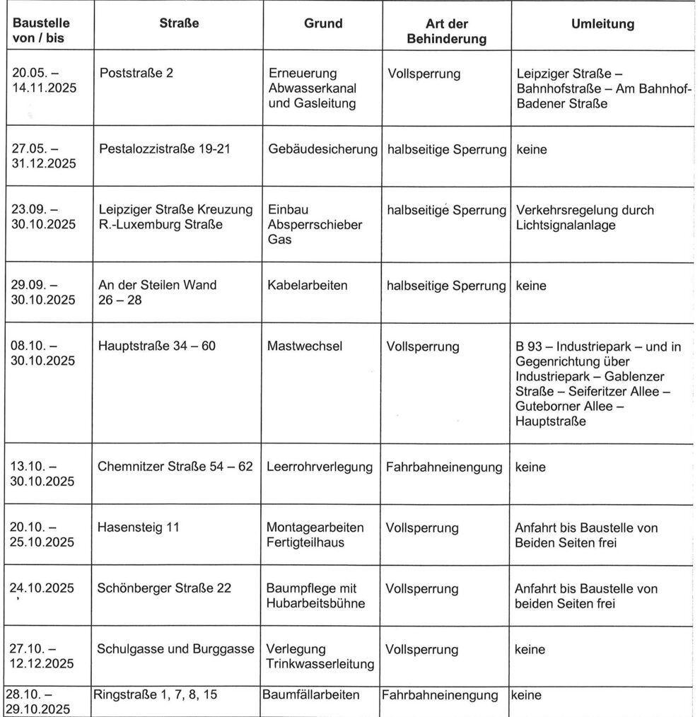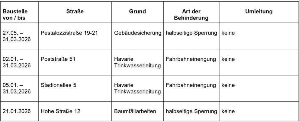 Dies ist eine voraussichtliche Information. Zeiträume für Beginn und Ende der Verkehrsbeschränkungen können sich jederzeit ändern. Alle Angaben ohne Gewähr.