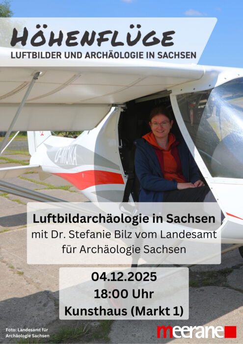 - „Luftbildarchäologie in Sachsen“ Vortrag mit Dr. Stefanie Bilz (Landesamt für Archäologie Sachsen) am 4. Dezember 2025 um 18:00 Uhr im Kunsthaus