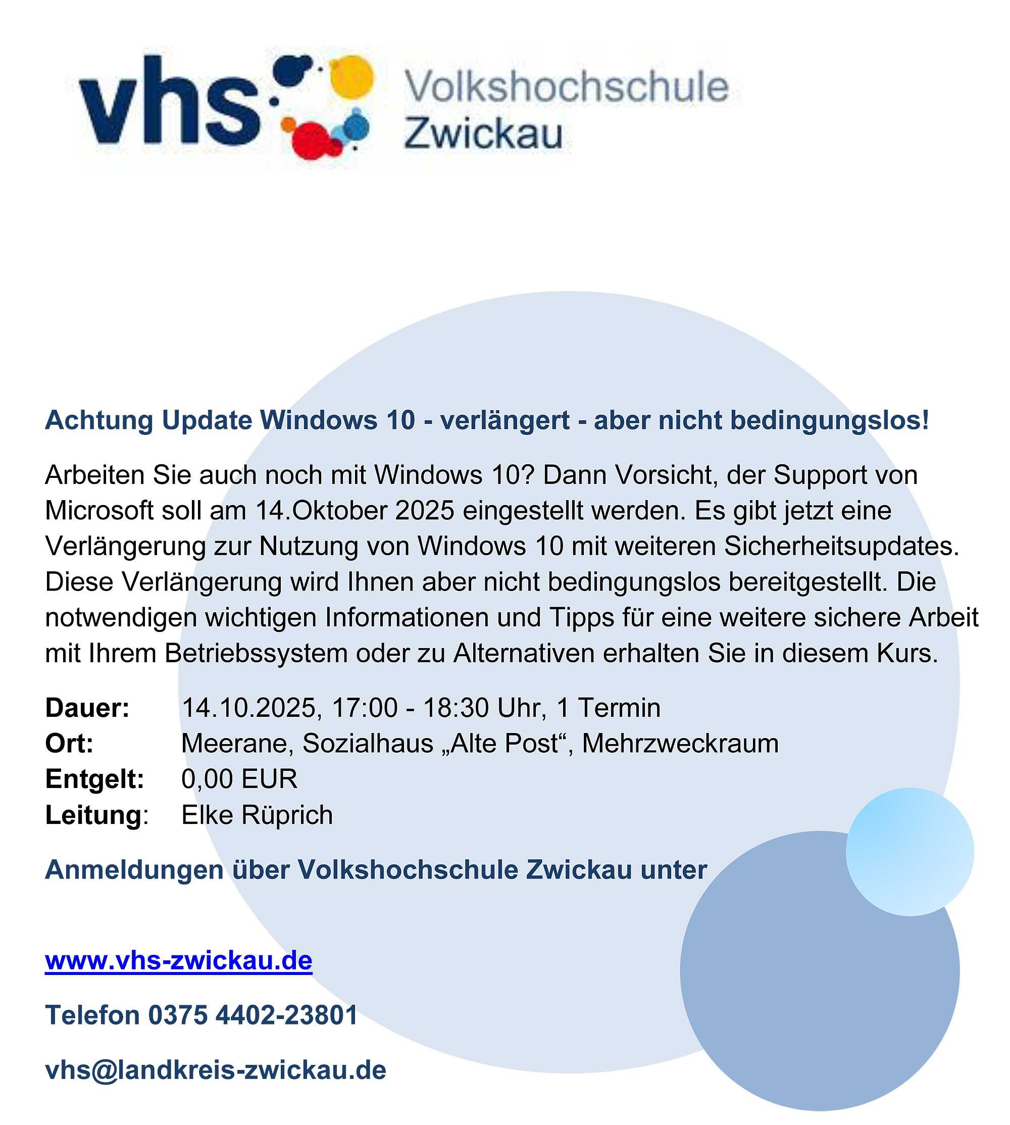 Volkshochschule informiert zum Thema Update Windows 10
