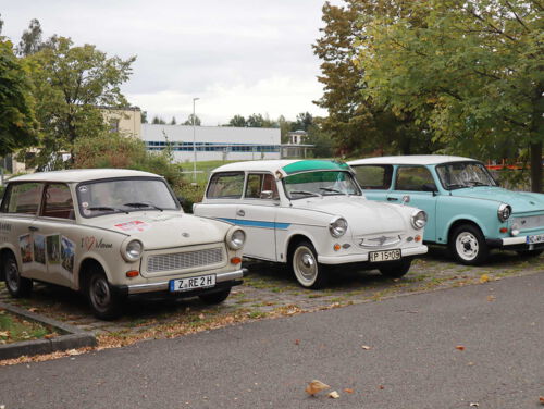 60 Jahre Trabant P 601 Universal – zu diesem Jubiläum, organisiert vom Verein Inter Trab e.V. (Internationales Trabant-Register) trafen sich Trabi-Fans aus ganz Deutschland am 4. Oktober 2025 in Meerane und Zwickau. Für die Gäste war an beiden Standorten – am EKM in Meerane und im August-Horch-Museum in Zwickau – ein abwechslungsreiches Programm, unter anderem mit Vorträgen und Filmvorführungen, vorbereitet.