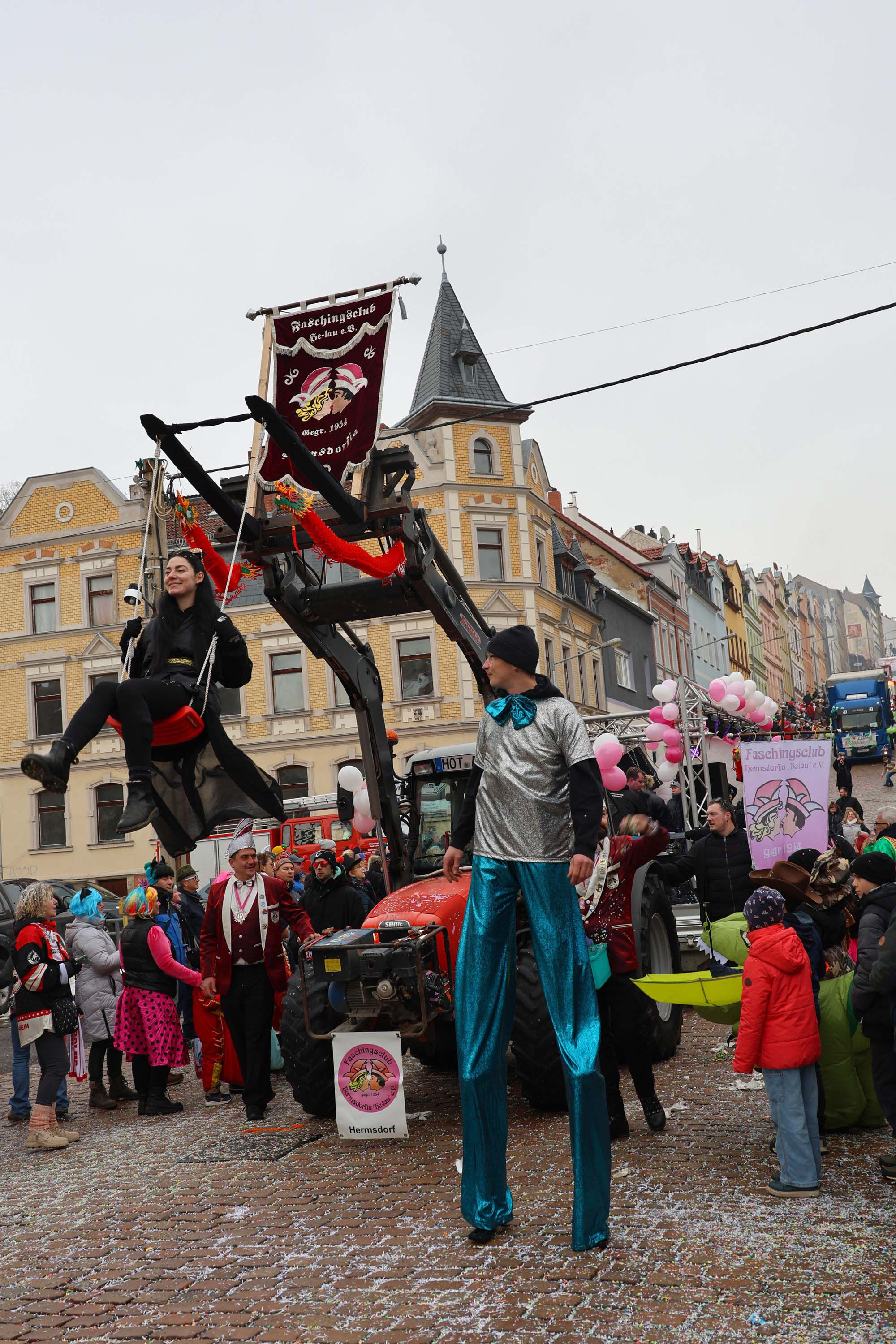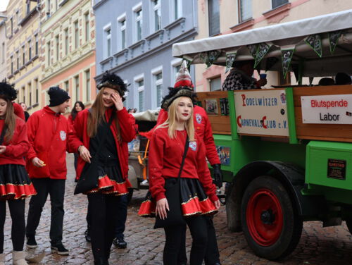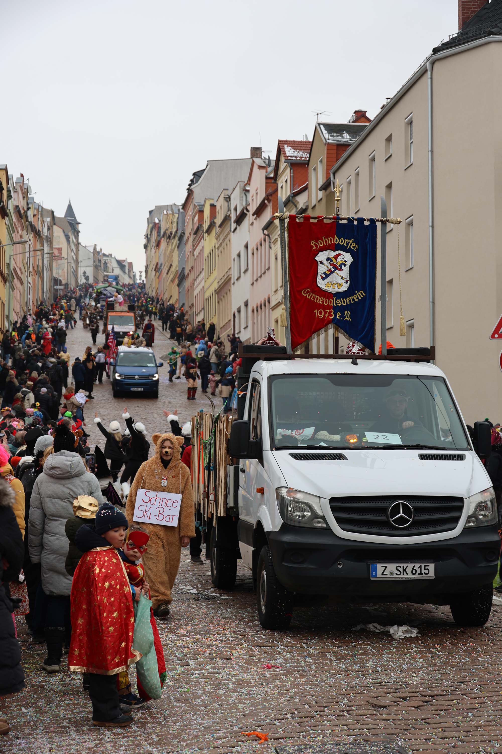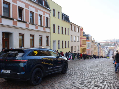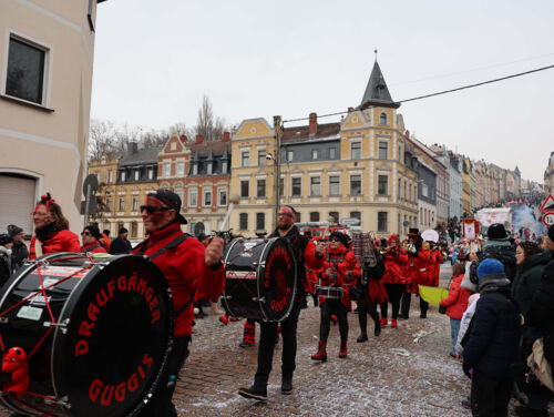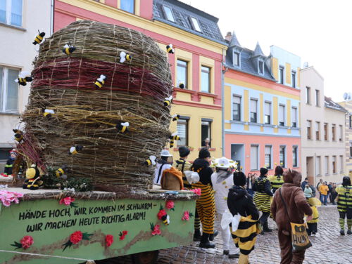 Mitten im Geschehen war auch Bürgermeister Jörg Schmeißer, der auf dem Umzugswagen der Stadt Meerane mitfuhr. Unter dem augenzwinkernden Motto „Digitalisierung Stück für Stück – wir schicken ein HELAU per Fax zurück!“ zeigte sich auch die Stadtverwaltung von ihrer närrischen Seite. Begeistert von der grandiosen Stimmung im Zug und entlang der Straßen dankte Jörg Schmeißer im Namen der Stadt Meerane allen Beteiligten – insbesondere den Organisatoren der Meeraner Pflasterköppe – herzlich für ihr großes Engagement.