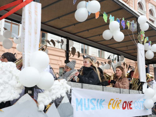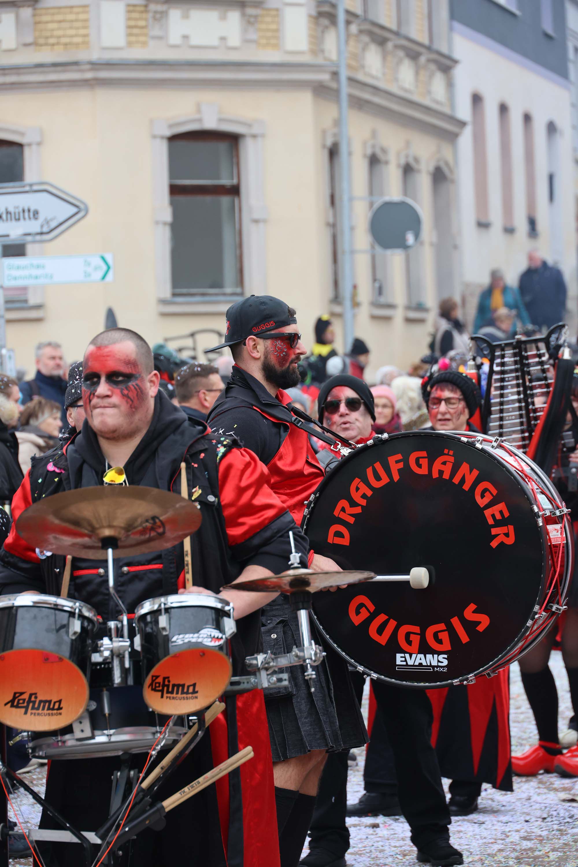 Die passende musikalische Untermalung lieferte wie gewohnt die beliebte Guggemusik. Mit ihren typisch schrägen, kraftvollen Klängen brachten die Gruppen den Zug zum Beben und verbreiteten echte Karnevalsstimmung, die weit über den Umzug hinaus zu hören war.