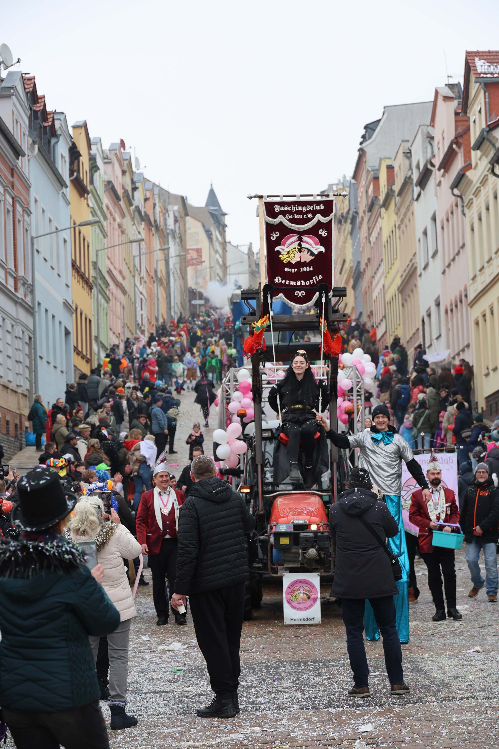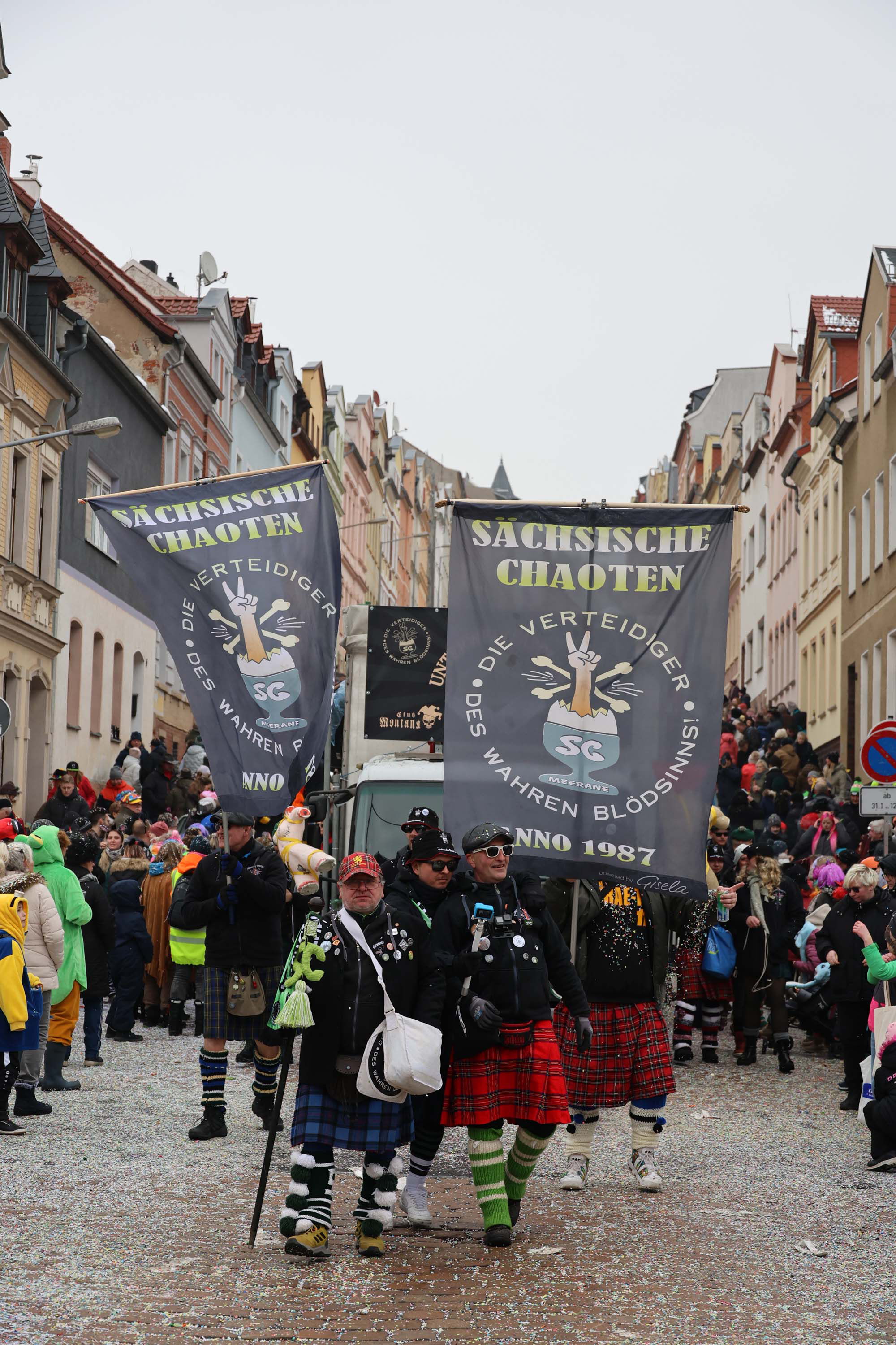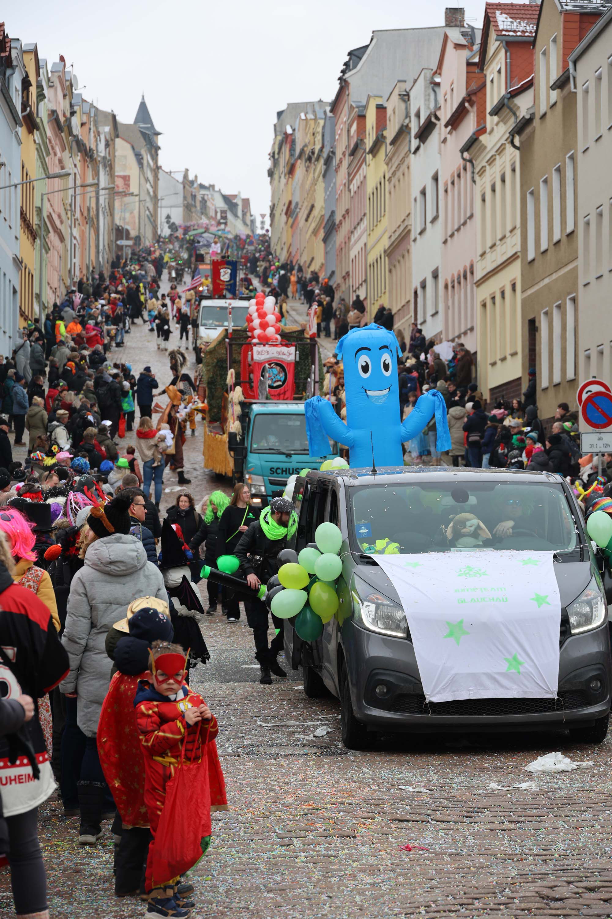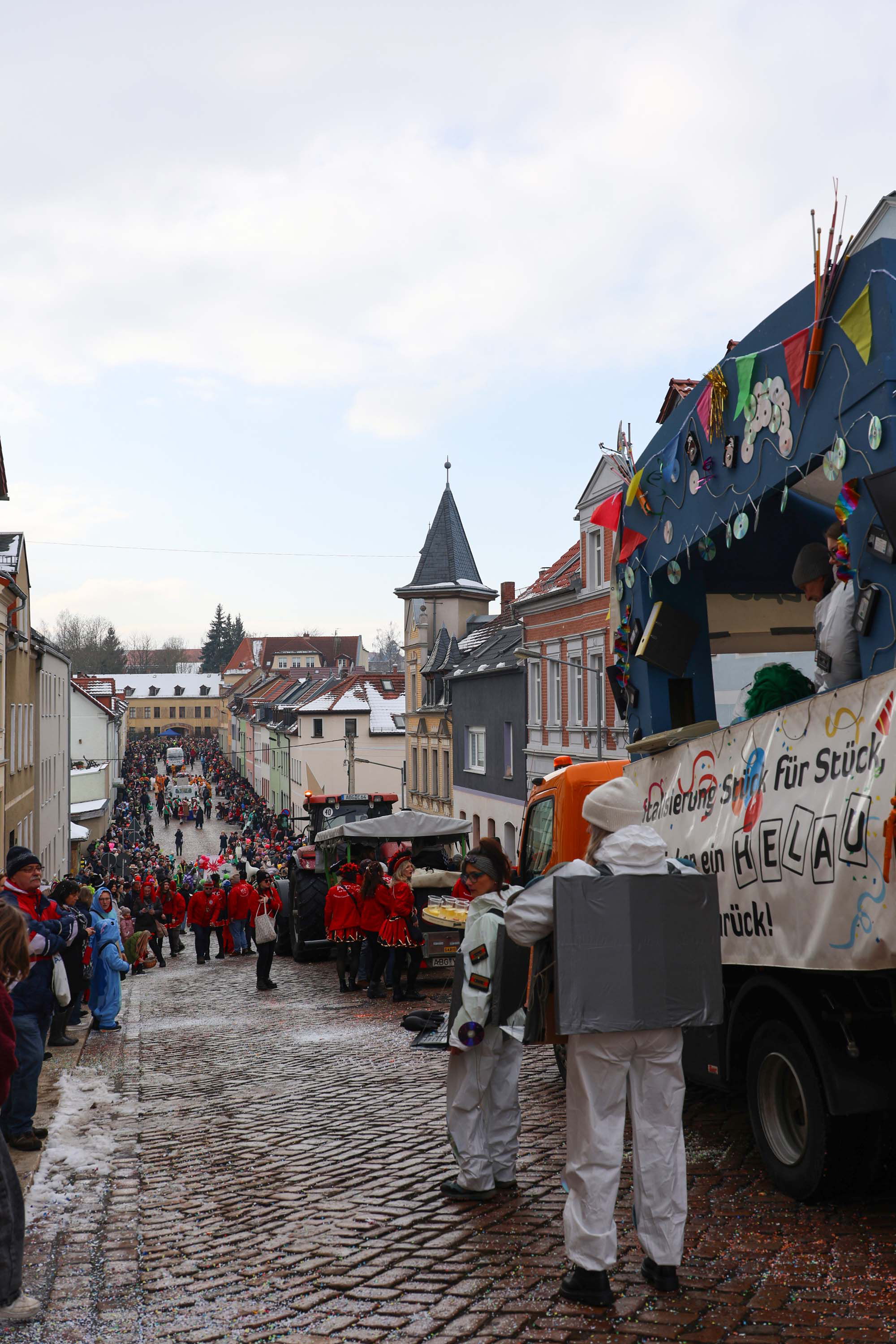 Großer Dank gilt allen aktiven Teilnehmerinnen und Teilnehmern des Umzugs, den zahlreichen Vereinen, Unternehmen und Gruppen, den vielen Besucherinnen und Besuchern sowie den Mitarbeiterinnen und Mitarbeitern der Stadtverwaltung. Für die Sicherheit der Umzugsteilnehmer und Gäste sorgten die Kameradinnen und Kameraden der Feuerwehren sowie die Einsatzkräfte von Polizei und Rettungsdienst. Ein besonderes Dankeschön geht außerdem an alle Helferinnen und Helfer, die beim anschließenden Aufräumen im Einsatz waren, dazu gehören die Mitarbeiterinnen und Mitarbeiter der Meeraner Stadttechnik und der Stadt Glauchau.