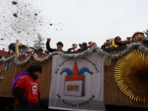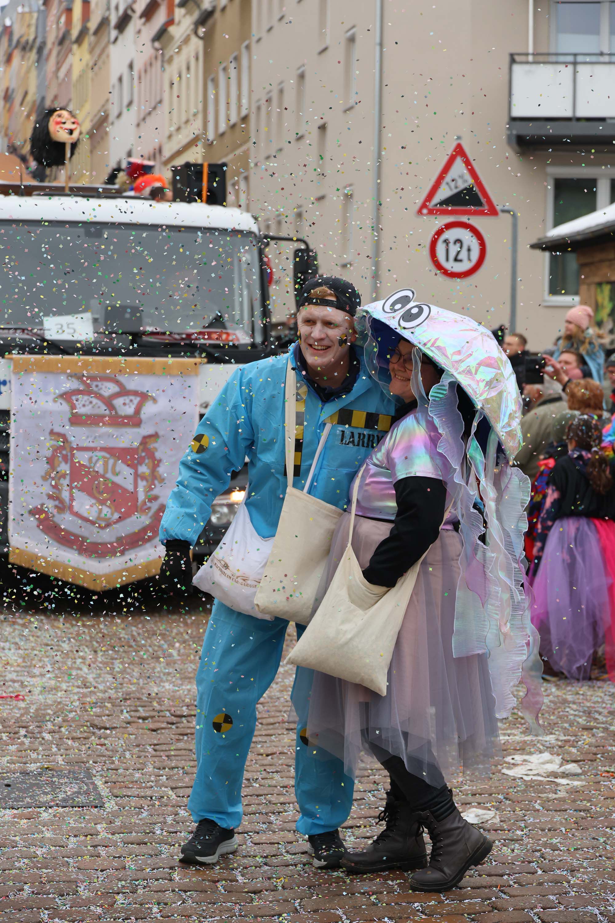 Doch nach dem letzten Wagen war noch lange nicht Schluss: Bis in die Abendstunden feierten die Jecken bei der Aftershow-Party auf dem Parkplatz vor der Karl-Heinz-Freiberger-Sporthalle weiter und ließen den närrischen Tag ausgelassen ausklingen.