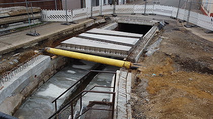Bachüberbauung Dittrichbach: Verlegung der Fertigteilplatten im Bereich Altmarkt / Am Merzenberg