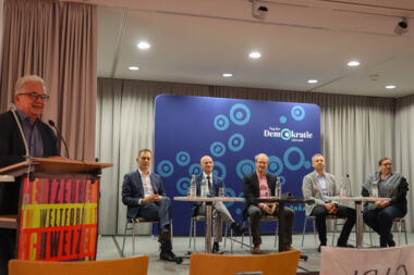 Zur Podiumsdiskussion im Hebelsaal des Dreiländermuseums begrüßte Moderator Matthias Zeller zahlreiche Gäste, darunter auch Vertreter des Vereins Lörrach International e.V., des Jugendforums Meerane und Vertreter des Lörracher Jugendrates. In der Diskussionsrunde sprachen Oberbürgermeister Jörg Lutz, der Meeraner Bürgermeister Jörg Schmeißer, die Lörracher Stadträtin und Ortsvorsteherin vom Ortsteil Brombach Silke Herzog und Alexander Schaffrinna über ihre jeweiligen Perspektiven auf den Stand der Wiedervereinigung und die politische Stimmungslage in der Bevölkerung beider Städte. Dabei wurden auch neue Sichtweisen aufgezeigt. Das Publikum hatte ebenfalls Gelegenheit, Fragen an die Diskutanten zu stellen und Impulse für deren Diskussion zu geben.