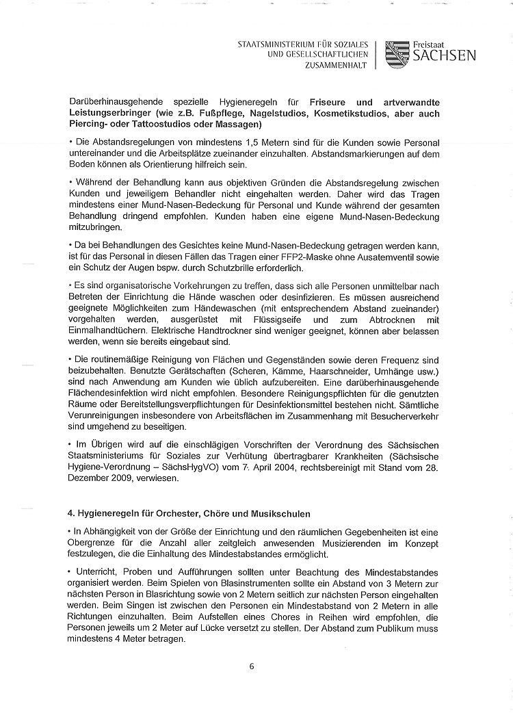 - Allgemeinverfügung – Vollzug des Infektionsschutzgesetzes – Maßnahmen anlässlich der Corona-Pandemie – Anordnung von Hygieneauflagen zur Verhinderung der Verbreitung des Corona-Virus – Bekanntmachung des Sächsischen Staatsministeriums für Soziales und Gesellschaftlichen Zusammenhalt – vom 25. August 2020... pdf-Dokument