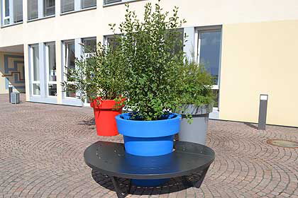 Die Pflanzgefäße auf dem Lörracher Platz am Neuen Rathaus haben passende Bänke erhalten.