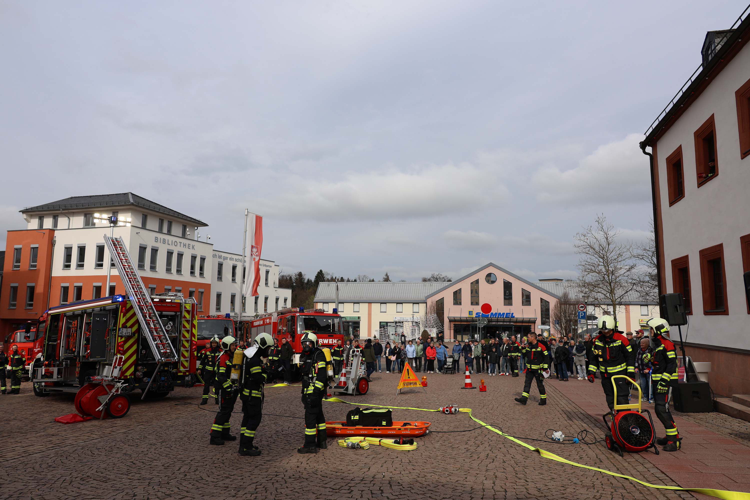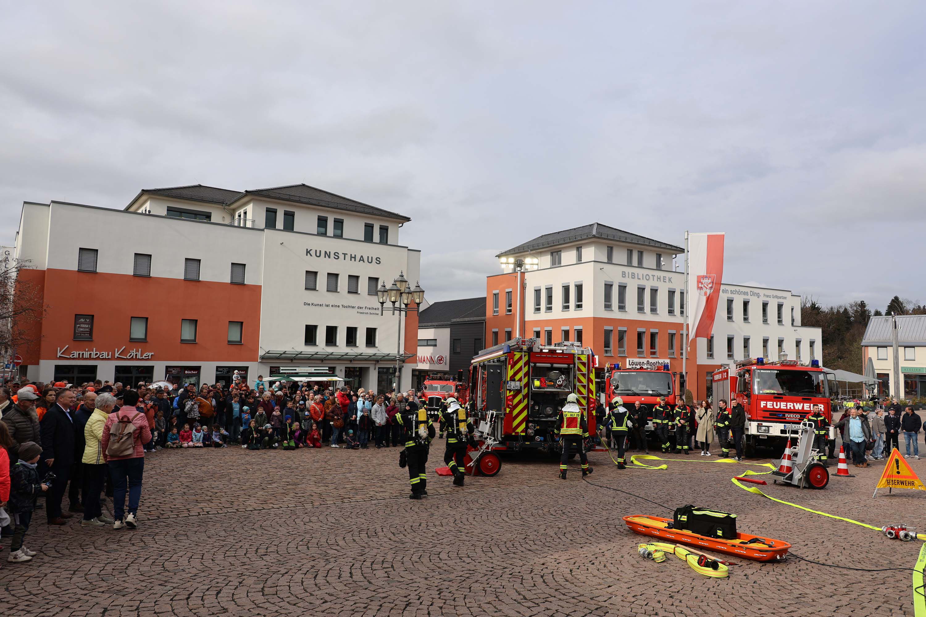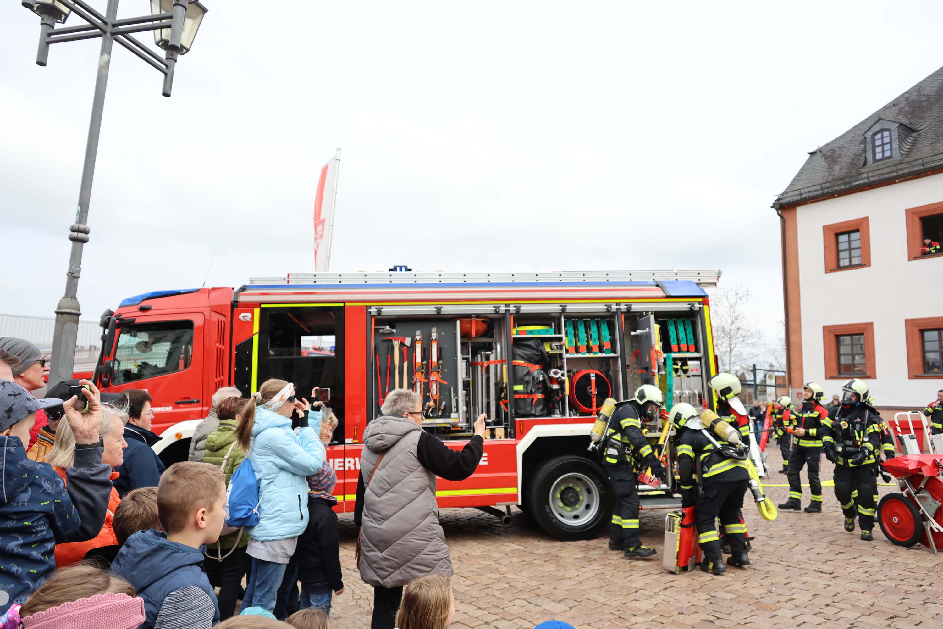 Das neue Einsatzfahrzeug sei ein hochkomplexes Arbeitsgerät, das helfe, schneller und effizienter Hilfe zu leisten und Menschen in schwierigen Situationen besser zu schützen. „Doch so beeindruckend dieses Fahrzeug auch ist – das Wichtigste sind die Menschen, die in den Einsatz fahren. Ohne diese wäre es nur ein sehr teures rotes Auto. Erst durch euren Einsatz, liebe Kameradinnen und Kameraden, wird daraus ein Rettungsfahrzeug“, so der Bürgermeister. Die Investition sei deshalb auch Ausdruck der Wertschätzung gegenüber den Feuerwehrangehörigen. Die Stadt bemühe sich kontinuierlich, die Ausstattung der Wehr auf einem modernen Stand zu halten. Das neue Fahrzeug und die große Fahrzeugschau sind ein besonderes Erlebnis gewesen – nicht nur für die erwachsenen Gäste, sondern auch für die vielen Kinder, die mit großen Augen die Technik bestaunten. Vielleicht, so der Bürgermeister, wecke dieser Tag auch bei jungen Besucherinnen und Besuchern das Interesse an der Feuerwehr. „Diese Fahrzeuge sollen heute auch Werbung für unsere Feuerwehr machen. Denn nur wenn sich junge Frauen und Männer bereit erklären, Dienst für unsere Stadt zu leisten, bleibt die Feuerwehr auch in Zukunft einsatzfähig.“