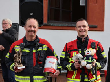 Auch die Kameradinnen und Kameraden der benachbarten Wehren aus Glauchau und Gesau überreichten Geschenke und wünschten der Meeraner Feuerwehr viel Erfolg sowie stets eine gesunde Rückkehr von allen Einsätzen.