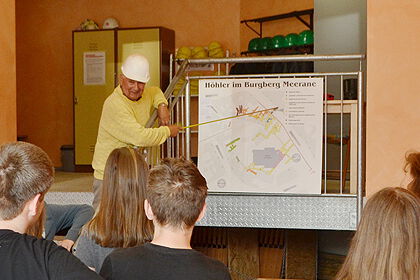 Manfred Höbald bei einer Führung mit jungen Gästen aus der Meeraner Partnerstadt Lörrach.