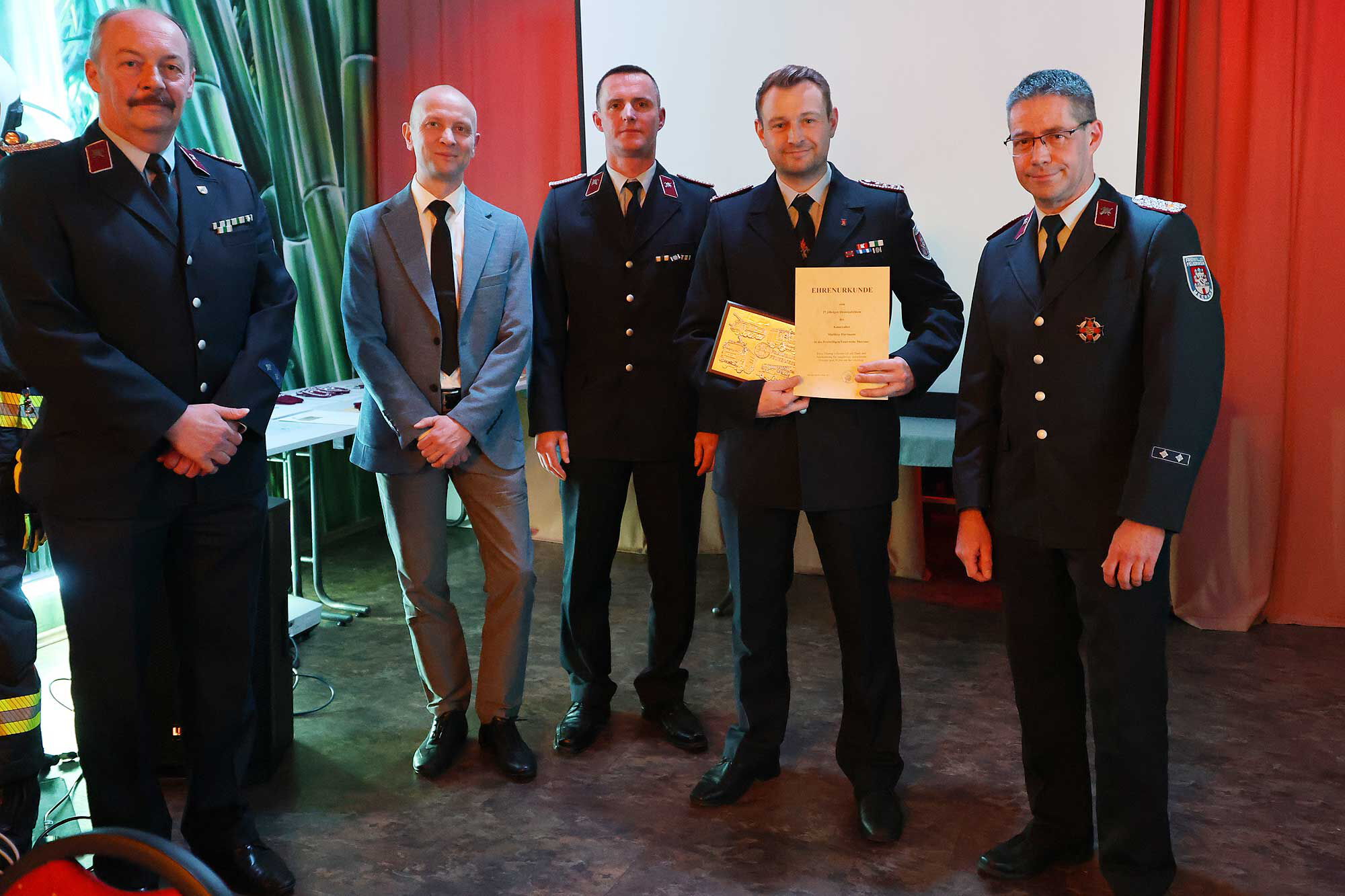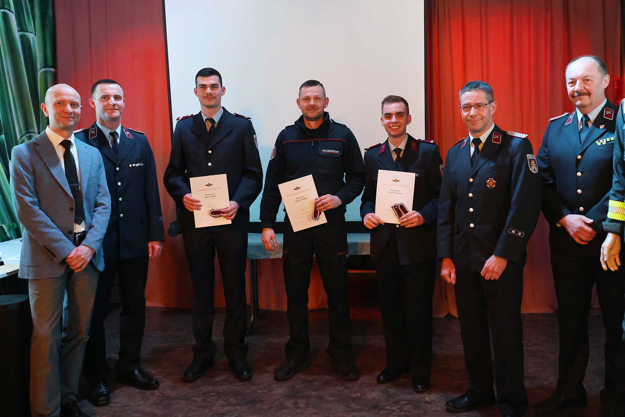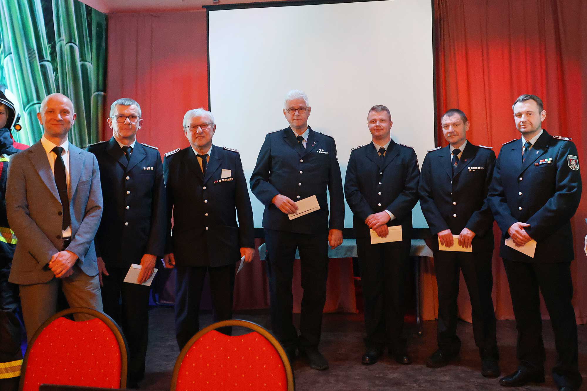 Die Urkunden überreichten Wehrleiter Kai Götze und seine Stellvertreter Jörg Scheerer und Sven Hertwig gemeinsam mit Bürgermeister Jörg Schmeißer, verbunden mit herzlichen Glückwünschen.