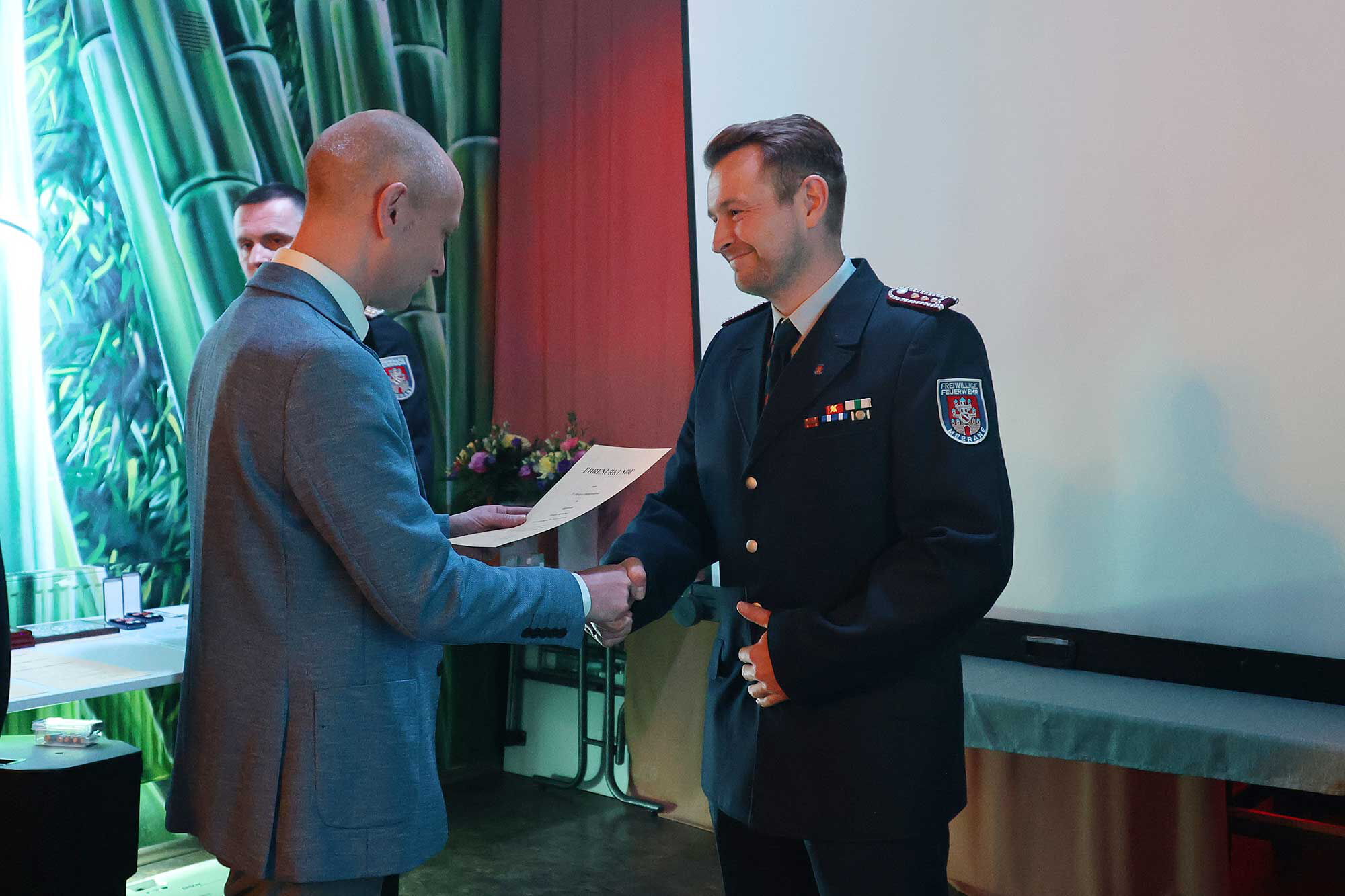 Kai Götze dankte Bürgermeister Jörg Schmeißer, den Dezernentinnen Iris Anders und Kerstin Eis mit ihren Mitarbeiterinnen und Mitarbeitern für die Unterstützung, den Meeraner Stadträtinnen und Stadträten, dem Kreisbrandmeister und seinem Team und den Wehren benachbarter Städte und Gemeinden für die sehr gute Zusammenarbeit.