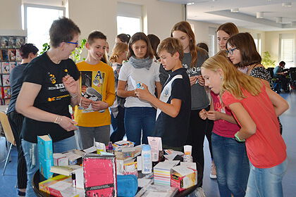 Adriana Bellmann hatte außerdem noch ein paar Zahlen dabei: So waren unter den 40 Teilnehmern 26, die schon einmal am Buchsommer teilgenommen hatten, 14 waren das erste Mal dabei. Insgesamt lasen die Kinder und Jugendlichen 357 Bücher, und das Buch „My first Love“ wurde mit 7 Verleihungen am häufigsten gelesen.