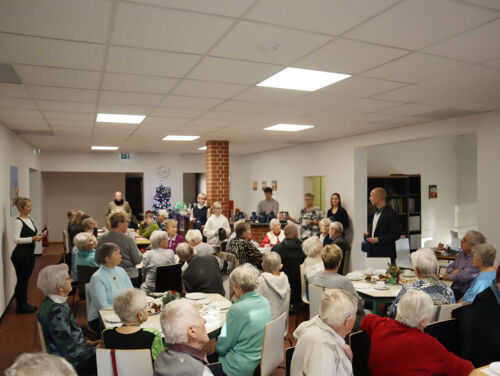 Bürgermeister Jörg Schmeißer schaute bei allen drei Seniorenweihnachtsfeiern vorbei. Er begrüßte die Gäste mit herzlichen Worten und wünschte ihnen schöne gemeinsame Stunden, eine besinnliche Weihnachtszeit und alles Gute für das neue Jahr. Für den Bürgermeister war es auch eine Gelegenheit, sich mit den Organisatoren auszutauschen und Danke zu sagen: „Herzlicher Dank gilt allen, die diese Feiern auf die Beine stellen, die sich liebevoll und mit Herzblut – nicht nur an Weihnachten – für unsere älteren Mitmenschen einsetzen. Sie schenken besondere Erlebnisse und leisten einen wertvollen Beitrag für unser Miteinander. Dass wir als Stadt solche Angebote machen können, ist ihrer engagierten Arbeit zu verdanken und verdient hohe Anerkennung.“ Diese Ansicht teilten auch die Seniorinnen und Senioren, die ihre große Freude über die vielfältigen Seniorenangebote mehrfach betonten. Nicht nur die Senioren wurden beschenkt, sondern auch die Organisatoren konnten sich über Geschenke seitens der Senioren freuen! Sowohl zur Feier im Seniorentreffpunkt „Zum Ringtreff“ als auch im „Treffpunkt Ost 36“ hatten sie dem Team eine Aufmerksamkeit mitgebracht, um sich für die engagierte Arbeit zu bedanken.