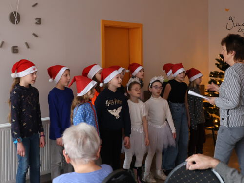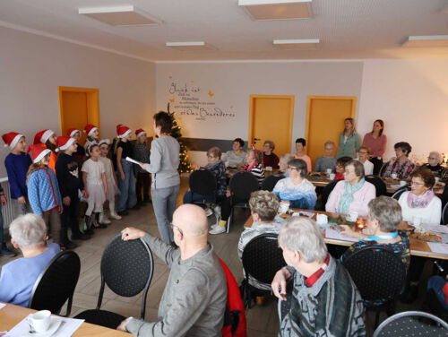 Natürlich gehört zu einer Weihnachtsfeier auch das passende Rahmenprogramm! So konnten sich die Seniorinnen und Senioren über musikalische Beiträge und Aufführungen vom Chor der Grundschule Friedrich-Engels-Schule, der Theater-Gruppe der Grundschule Friedrich-Engels-Schule und der Oberschule Tännichtschule sowie vom Chor vom Hort an der Lindenschule freuen.