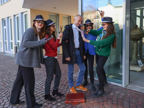 Und daran haben sich auch die Mitarbeiterinnen der Stadtverwaltung Meerane gehalten. Sie ließen es sich heute nicht nehmen, dem Bürgermeister zu Dienstbeginn kurzerhand (und natürlich nur symbolisch) die Macht zu entreißen und das Rathaus fest in närrische Frauenhand zu legen.
