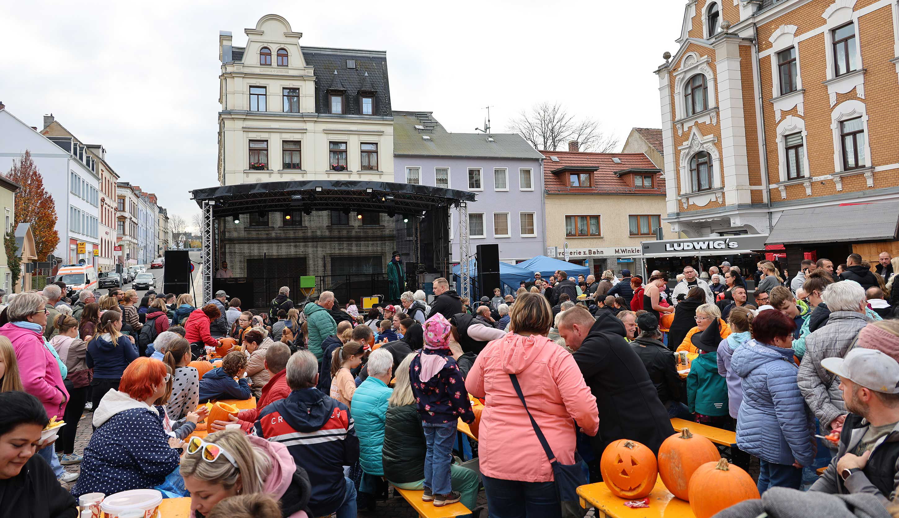 Das Jubiläumsjahr neigt sich dem Ende zu, doch am 31. Oktober 2024 wurde auf dem Teichplatz nochmal richtig gefeiert! Der Jugendclub „Beverly Hill’s“ e.V. als Träger der Partnerschaft für Demokratie Meerane hatte gemeinsam mit dem Schloss-Café Ponitz und der Stadtverwaltung Meerane zum Herbstfest und einem bunten Familiennachmittag eingeladen. Bürgermeister Jörg Schmeißer, Sebastian Reichenbach vom Jugendclub „Beverly Hill’s“ e.V. und die Gruppe „Schlechte Gesellschaft Meerane“ begrüßten die zahlreichen kleinen und großen Besucher, für die ein abwechslungsreiches Bühnenprogramm und viele weitere Angebote vorbereitet waren. Die Halloween-Fans konnten beim Kürbis-Schnitzen mit dem Jugendclub und der Partnerschaft für Demokratie ihrer Kreativität freien Lauf lassen oder in der Hüpfburg toben. Auch „Udo‘s Kinder-Express“ war zum Herbstfest unterwegs und sorgte für großen Spaß. Außerdem stand eine Bastelstraße von der „Schlechten Gesellschaft Meerane“ bereit, wo Lampions gebastelt oder Bilder gemalt werden konnten. Wie die Freundesgruppe mitteilte, sollen die dort gesammelten Spenden einem gemeinnützigen Verein in der Stadt zugutekommen. Zum diesjährigen Weihnachtsmarkt, an dem die „Schlechte Gesellschaft“ auch dabei sein wird, sollen weitere Spenden gesammelt und schließlich das Geheimnis gelüftet werden, wer sich über die Finanzspritze freuen kann!