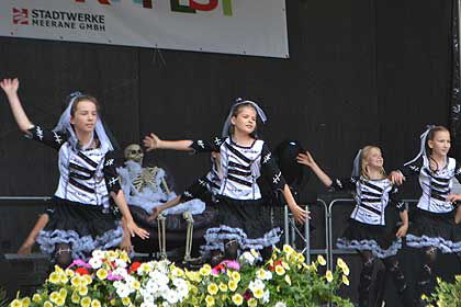 Sie waren die wirklich größten Damen auf dem Meeraner Parkfest: "Inflammati" - Franziska und Maria. Als Elfe und Schmetterling schwebten sie über Festwiese und Wege und waren natürlich ein gefragtes Fotomotiv. Auch Bürgermeister Professor Dr. Ungerer gaben die Damen die Ehre.