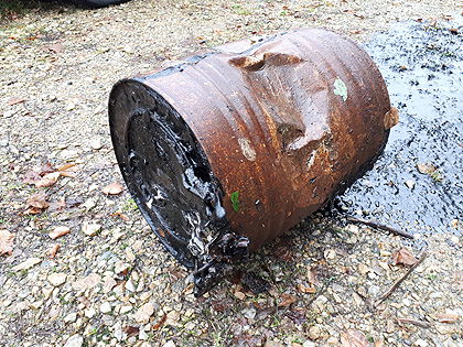 Die Mitarbeiter des Gemeindlichen Vollzugsdienstes fanden hier ein abgestelltes und umgestoßenes Fass mit bituminösem Teeranstrich (Kaltanstrich). Dieser Teeranstrich war bereits aus dem Fass ausgetreten und hatte das Erdreich kontaminiert.