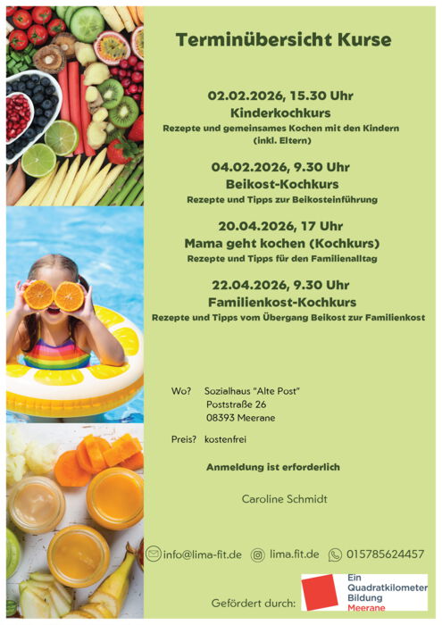 Im Sozialhaus „Alte Post“ Meerane finden im Frühjahr 2026 wieder interessante Workshops zum Thema Ernährung von Kindern und der Familie statt. Dabei gibt es Rezepte für die Teilnehmerinnen und Teilnehmer, es wird gemeinsam gekocht und Ernährungsberaterin Caroline Schmidt gibt praktische Tipps