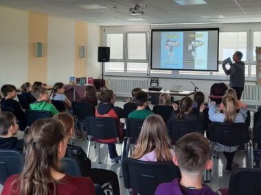 Am Donnerstag, den 16. November 2023, war der Autor Jens Reinländer zu Gast, der für jede Klassenstufe ein eigenes lustiges Programm vorbereitet hatte. Während er für die Erstklässler sein Buch „Karo Kugel – Superelfe“ vorstellte, konnten die Zweitklässler seinem Buch „Wieso machen A und O zwei Köche froh?“ lauschen und konnten dabei herzhaft lachen. Für die Dritt- und Viertklässler trug er aus seinem Buch „Edgar – Mein Leben zwischen Nobelpreis und A*karte“ (Band 1 und 2) vor und auch hier konnte er den jungen Zuhörerinnen und Zuhörern zahlreiche Lacher entlocken.