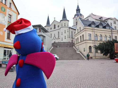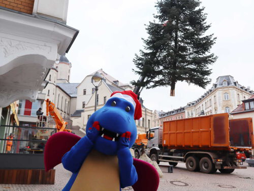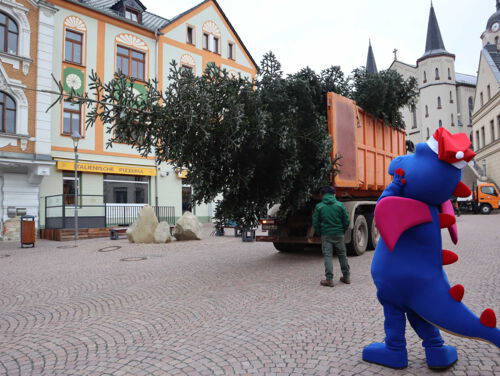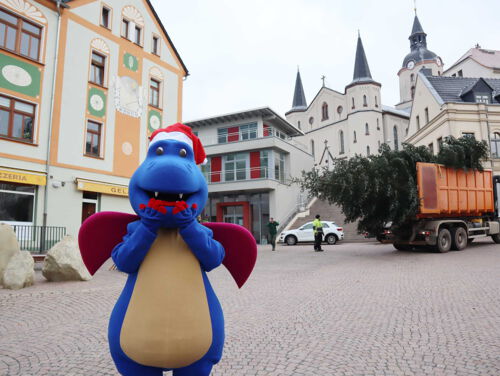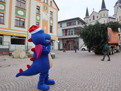Meerano begrüßt Weihnachtsbaum auf dem Meeraner Teichplatz