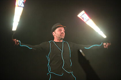 Eine phantastische LED- und Lasershow erlebten die Gäste des Neujahrsempfanges der Stadt Meerane in der Stadthalle am 17. Januar 2020 - gestaltet vom Berliner Leuchtjongleur Volker Maria Maier.