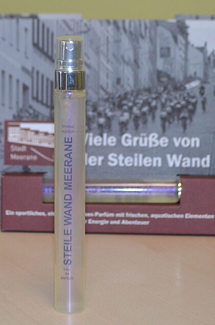 Entwickelt wurde das Parfüm „Steile Wand Meerane“ – ein sportlicher, frischer und klarer Duft – in Zusammenarbeit der Stadt Meerane mit der in Meerane ansässigen Duftmanufaktur REIMA AirConcept. Seinen Namen verdankt es Meeranes berühmtester Straße: „Steile Wand“!