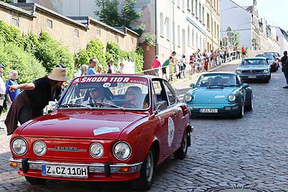 Im Fahrerfeld 2023, bzw. mit den Startnummern 1 und 4 an der Spitze des Fahrerfeldes, waren auch Meeraner Automobilfans: Klaus-Dietmar Hessel mit Beifahrerin Petra Hessel im Adler Trumpf Junior Limousinencabriolet (Baujahr 1936) und Dietmar Glotz mit Beifahrer Sven Glotz im EMW 327 Cabrio (Baujahr 1953).