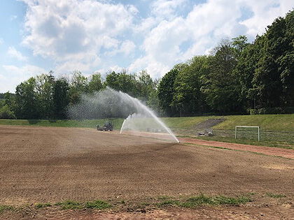 Sanierung des Rasenplatzes im Richard-Hofmann-Stadion: Arbeiten am Spielfeld abgeschlossen / Neue Beregnungsanlage im Einsatz