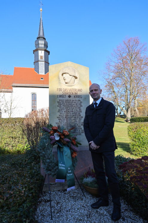 Jörg Schmeißer legte auch einen Kranz am Mahnmal des ersten Weltkrieges in Waldsachsen nieder.