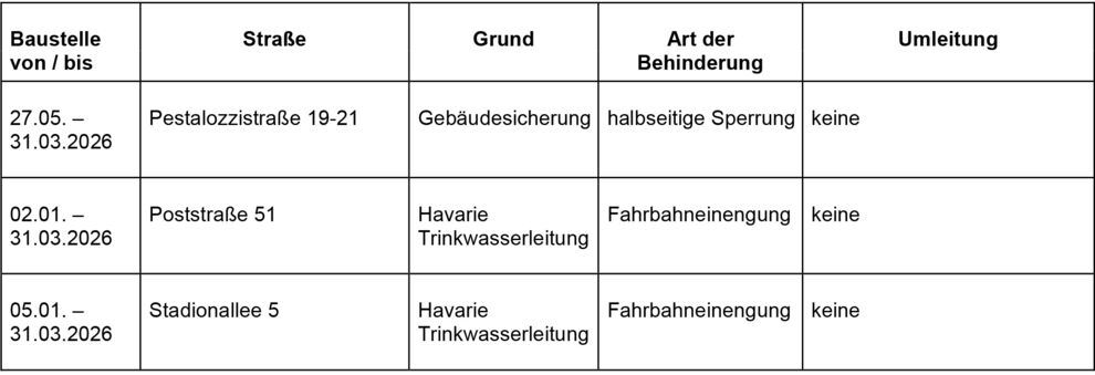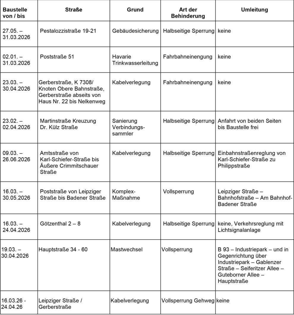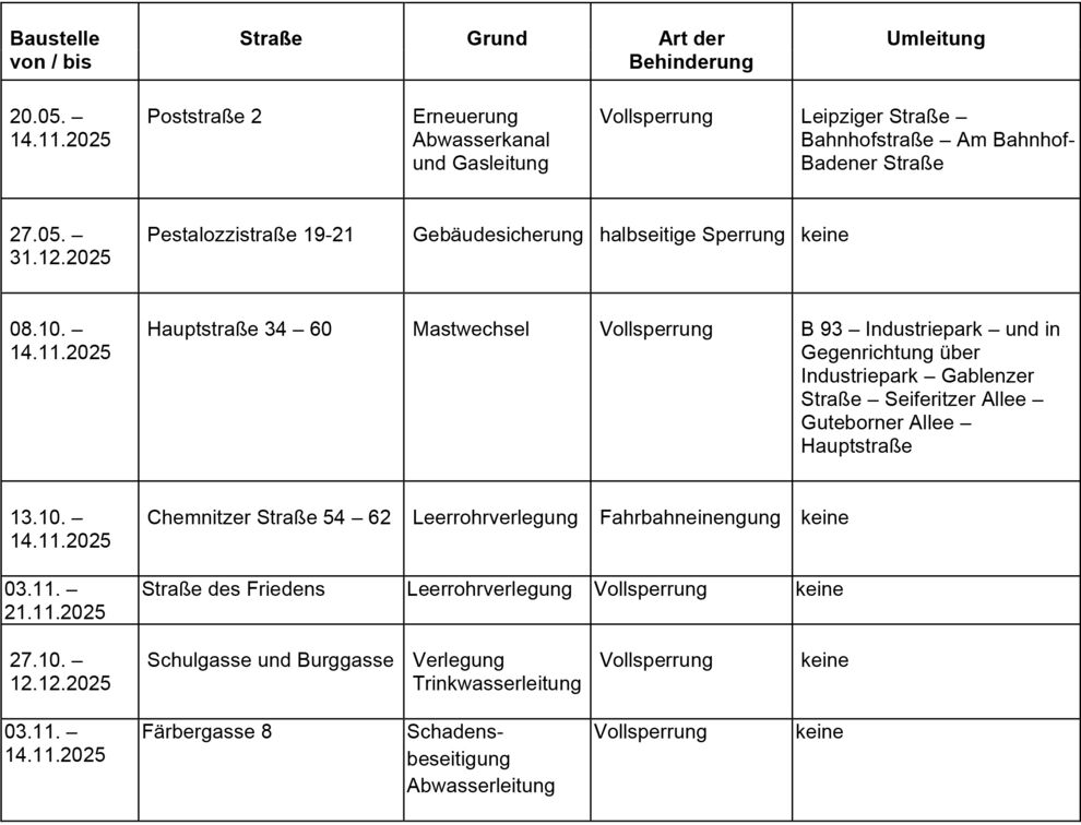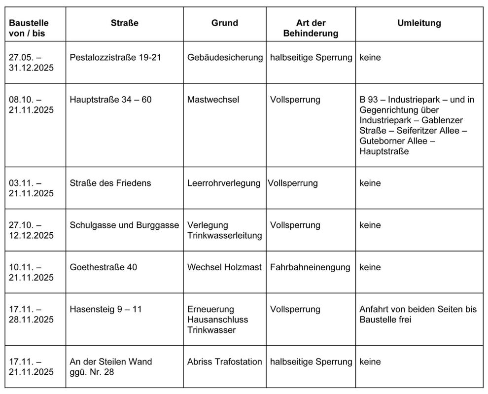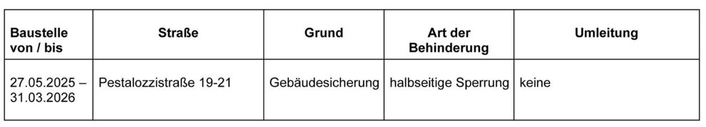 Dies ist eine voraussichtliche Information. Zeiträume für Beginn und Ende der Verkehrsbeschränkungen können sich jederzeit ändern. Alle Angaben ohne Gewähr.