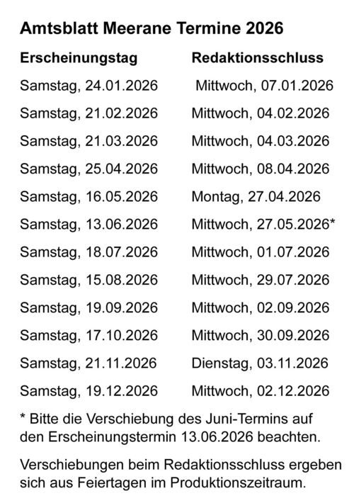 Termine Amtsblatt der Stadt Meerane