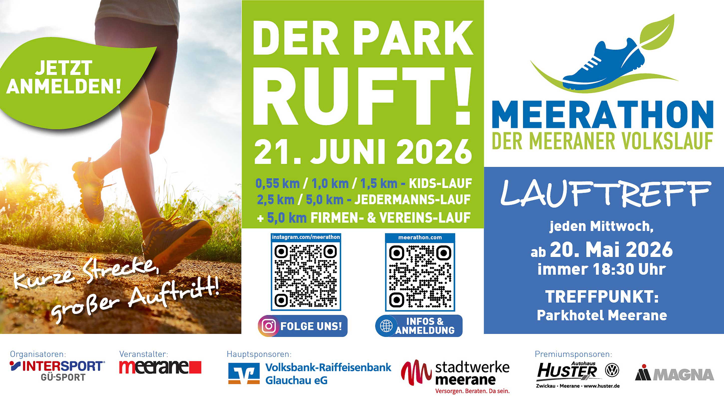 Für alle, die sich gemeinsam auf den MEERATHON vorbereiten möchten: Am Mittwoch, 27. Mai 2026, um 18:30 Uhr, findet ein Lauftreff im Wilhelm-Wunderlich-Park statt. Andreas Hahn von Intersport Gü-Sport trainiert mit interessierten Läuferinnen und Läufern auf der Originalstrecke. Treffpunkt ist am Parkhotel Meerane.